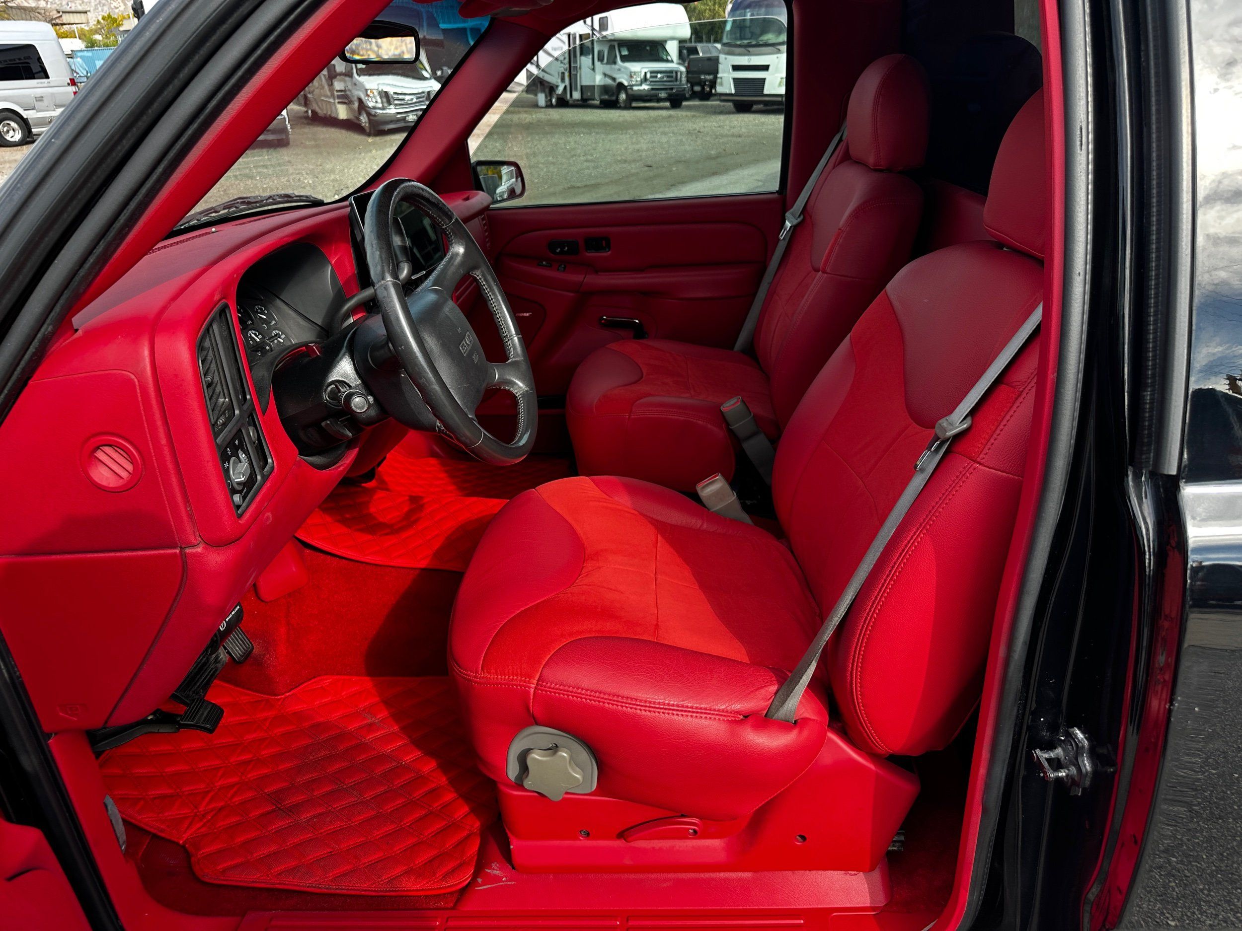 Unleash the power and style of this meticulously crafted 2000 GMC Sierra 1500 SLE Regular Cab, a true masterpiece on wheels. This Onyx Black beauty boasts a fresh new paint job complemented by striking OEM 20" wheels with a fresh powder coat and tires. The molded roll pan, tinted taillights, and black/clear headlights enhance its bold presence. Under the hood lies a completely rebuilt 6.0L V8 motor featuring an Elgin E-1840-P Sloppy Mechanics Stage 2 Grind LS Camshaft and more—ready to deliver around 400hp with potential for much more.