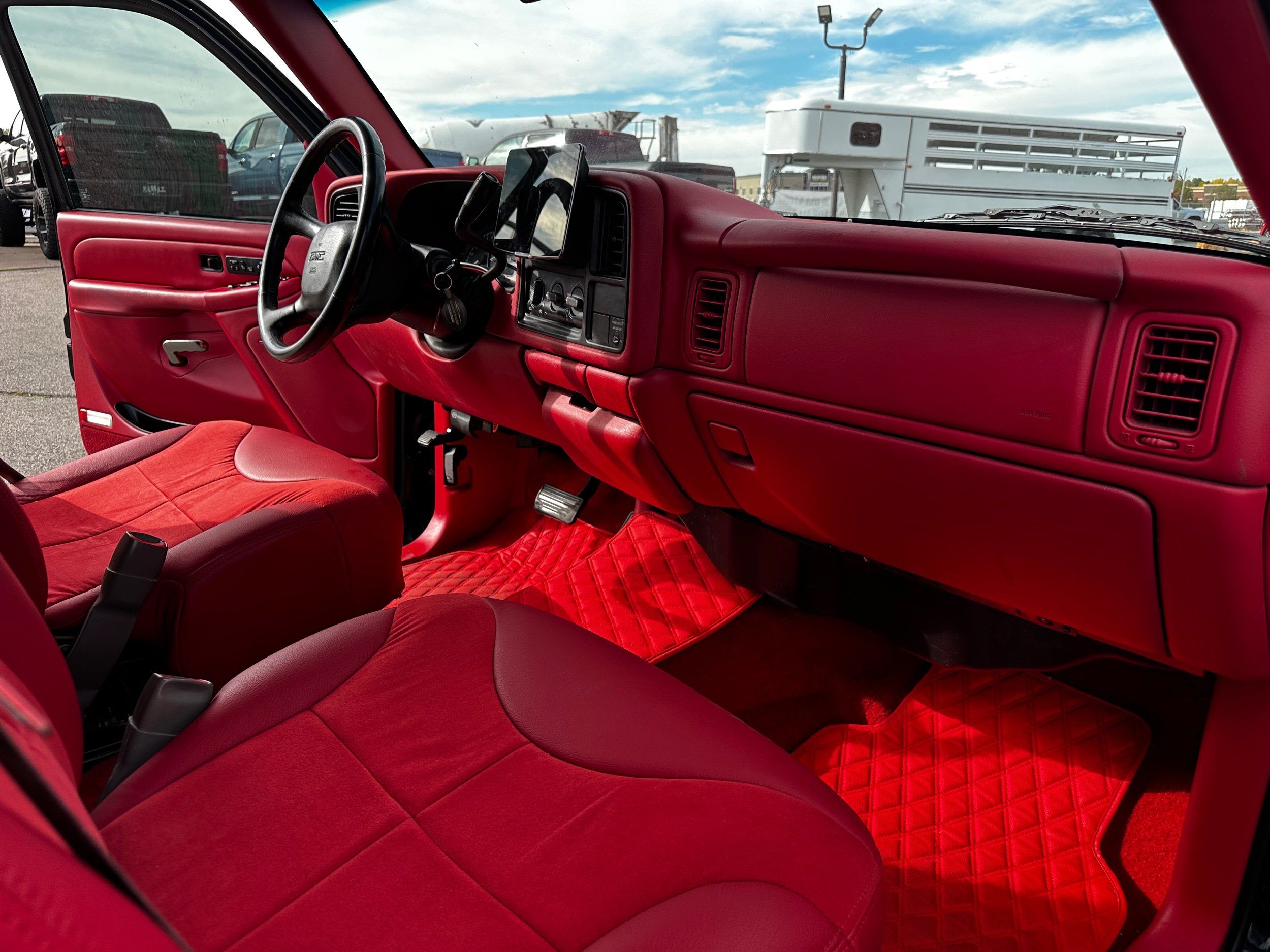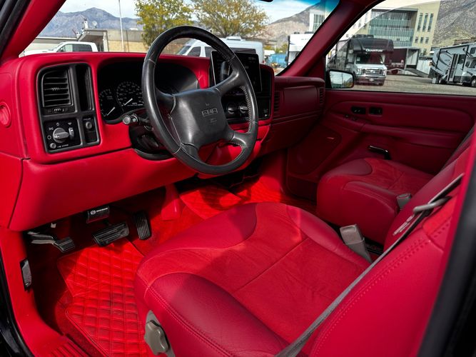 Step inside to experience luxury with a full red interior outfitted with Denali seats and Alpine sub speakers that alone are worth over $10k. Built for both performance enthusiasts and those seeking comfort, it features DJM suspension with mini C notch and is ready for boost or enjoyment as is. This truck passes emissions effortlessly while being built to hold up to an impressive 600 hp thanks to its robust Circle D stall converter paired with the durable 4L65E transmission. Don’t miss your chance—experience unparalleled craftsmanship today!