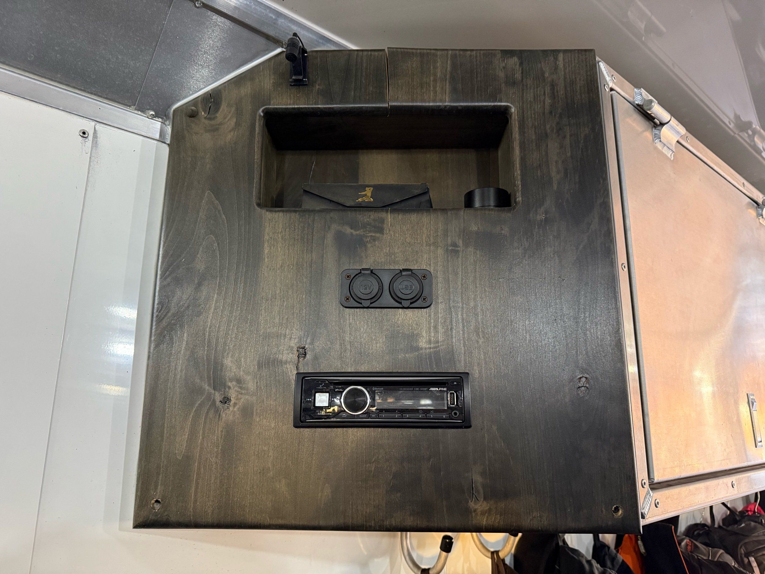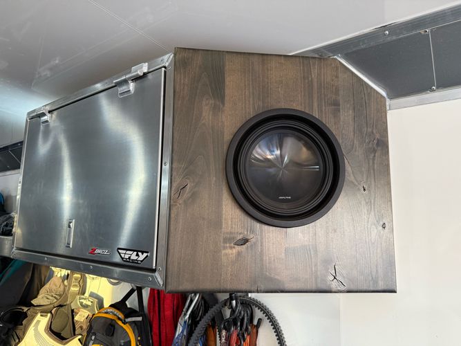 - Alpine stereo deck with speakers and subwoofer