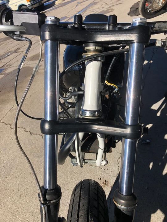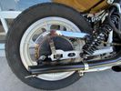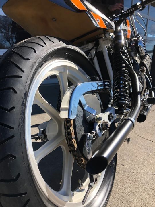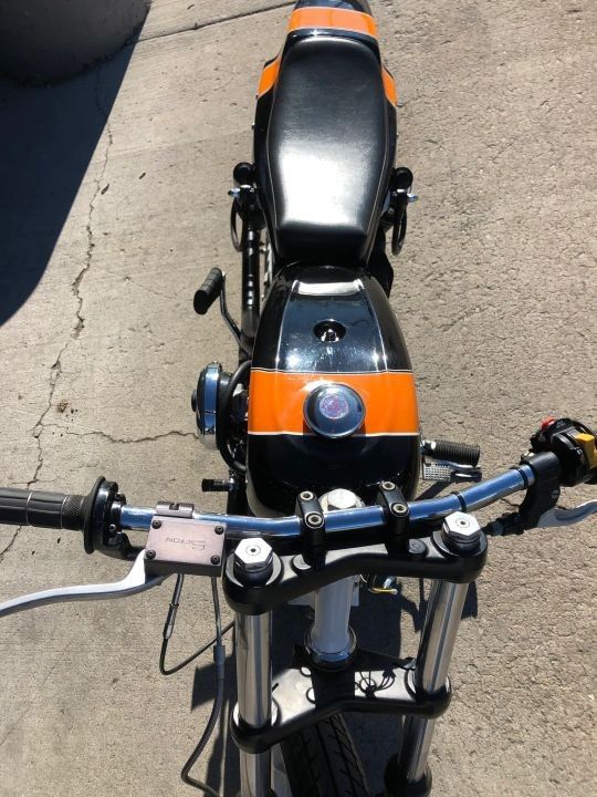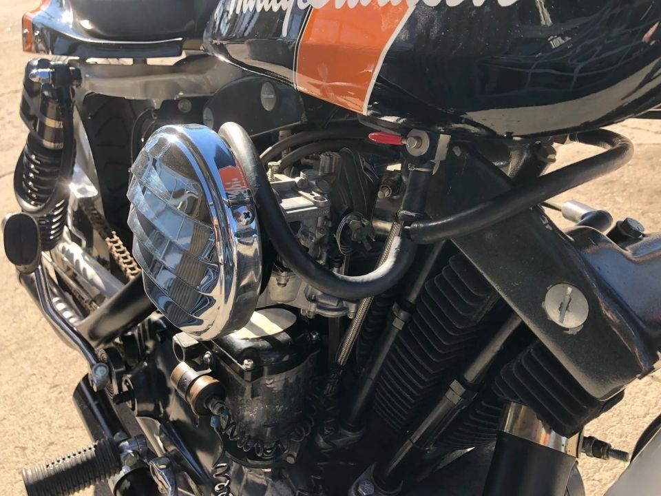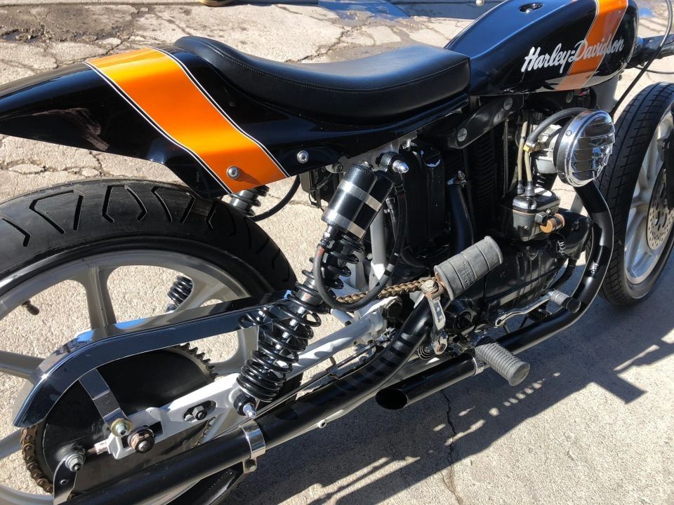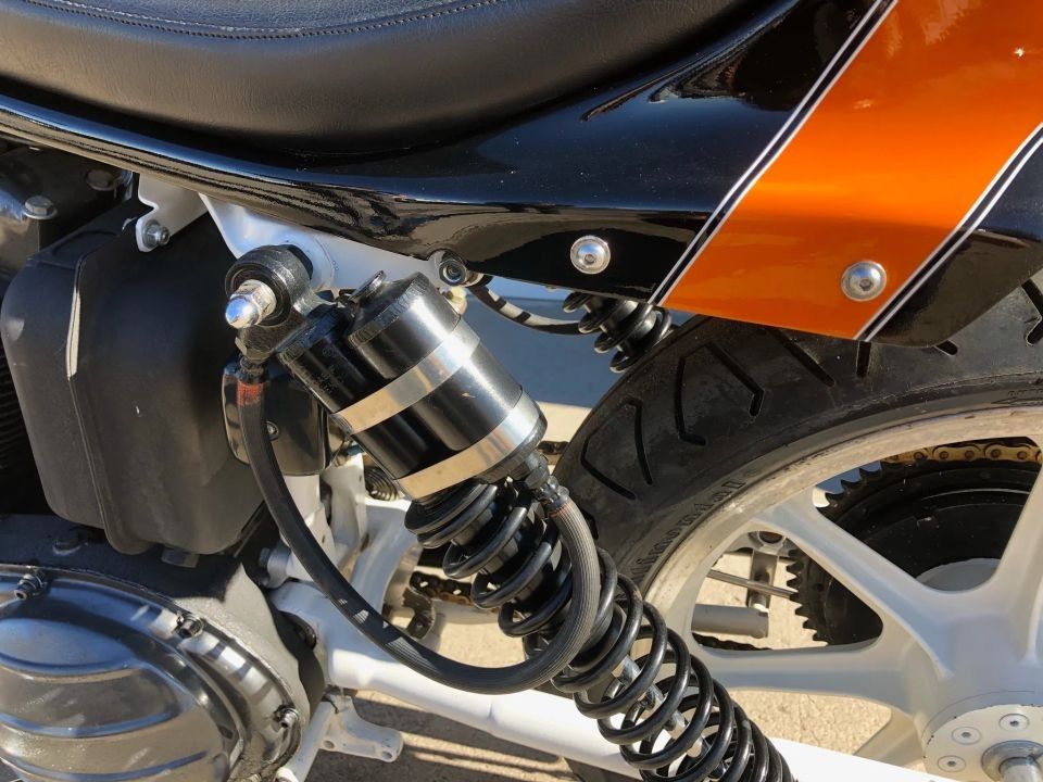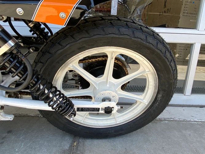 This Sportster Iron Head comes equipped with a 900cc engine with what appears to be a big bore kit with custom push rods but we are unsure what size, 4-speed transmission, carburetor, kick start, Morris Magneto, aftermarket fiber glass tins with custom paint scheme, custom painted white frame, custom painted white mag wheels, disc front brake, rear sprocket chain drive with drum brakes, aftermarket updated rear shocks, 35mm front end, mid controls, NEW tracker tires, extended swing arm, drag bars, and more! Come in and check out today!