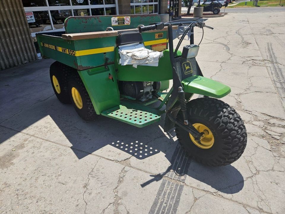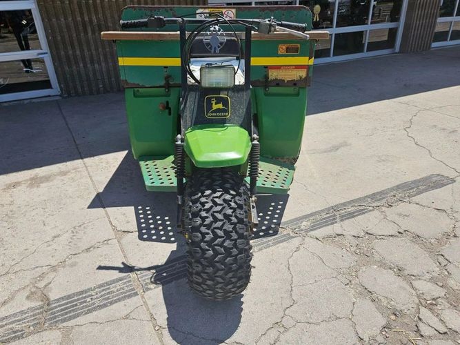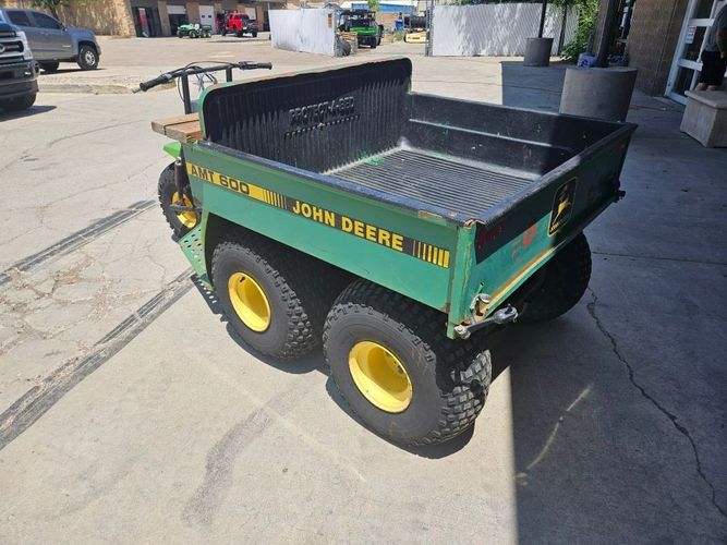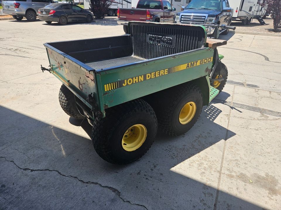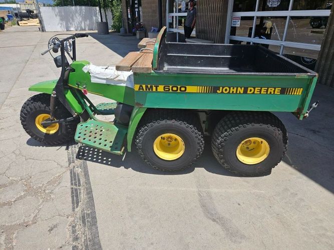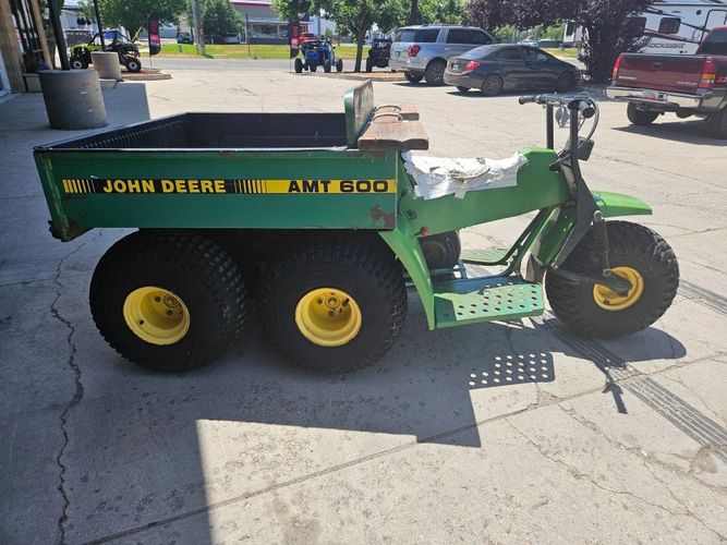 This 1990 John Deere AMT 600 is a tough utility vehicle designed for hauling, towing, and traversing uneven terrain. It features a 4-cycle, 341cc Kawasaki gas engine with a top speed of 20mph, giving it both power and control. The manual dump bed makes hauling feed, firewood, or tools a breeze, with a payload capacity of around 600 lbs. It has five wheels for added stability, a solid steel frame, and minimal electronics ñ making it easy to maintain and built to last. It's a dependable option for farmers, hunters, or landowners who need a simple but durable work vehicle.