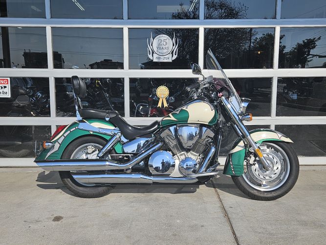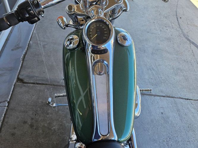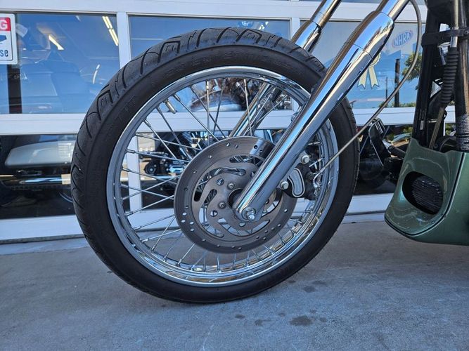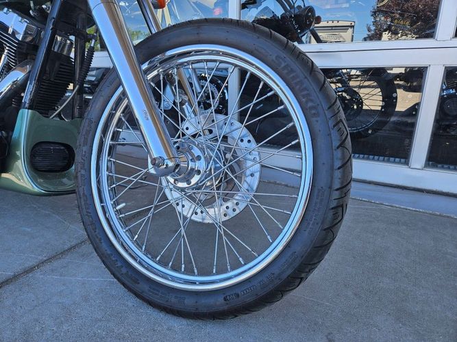 48,360 miles! This Deuce comes equipped with a 88ci engine, 5-speed transmission, carburetor, air cooled, belt drive, disc brakes, aftermarket chrome 2-to-1 pipe, custom green paint scheme, chrome laced from wheel, solid rear mag wheel, aftermarket Corbin Sturgis seat with passenger pad, passenger pegs, rider forward controls, aftermarket pegs, aftermarket brake pedal, aftermarket shifter, aftermarket steel braided cables, aftermarket AVON grips, aftermarket levers, tank mounted speedometer, and more! Come in and check it out today!