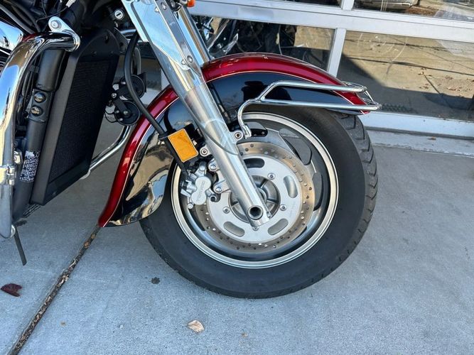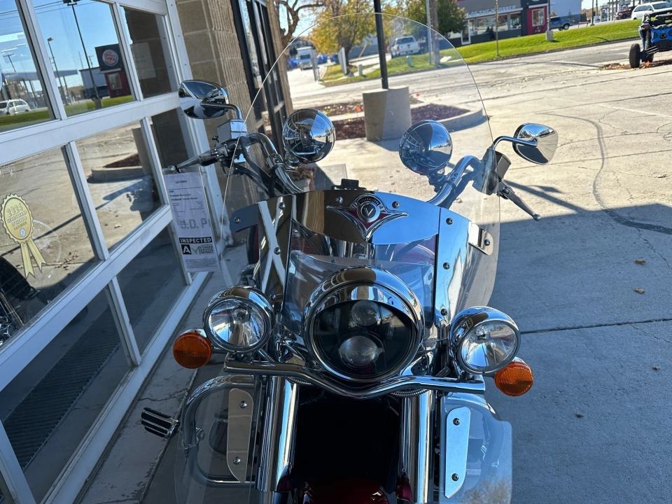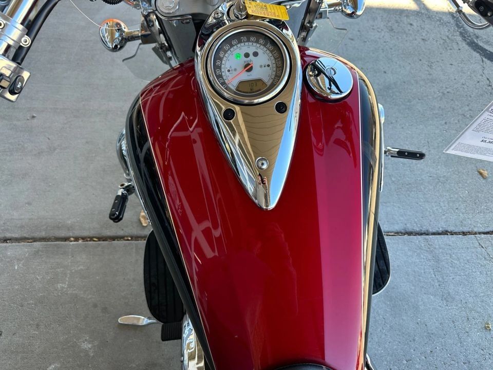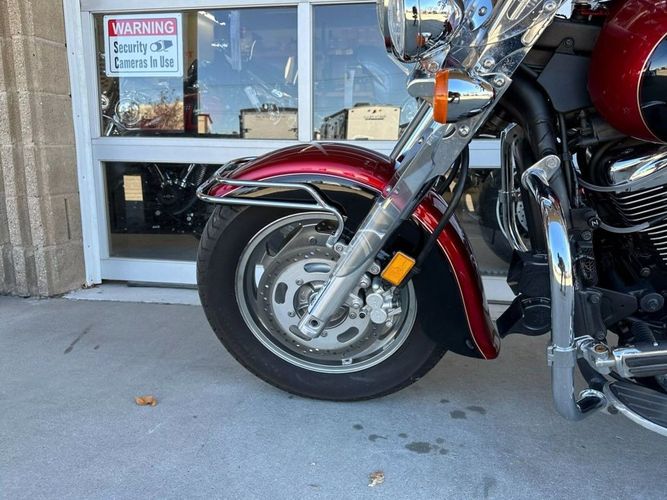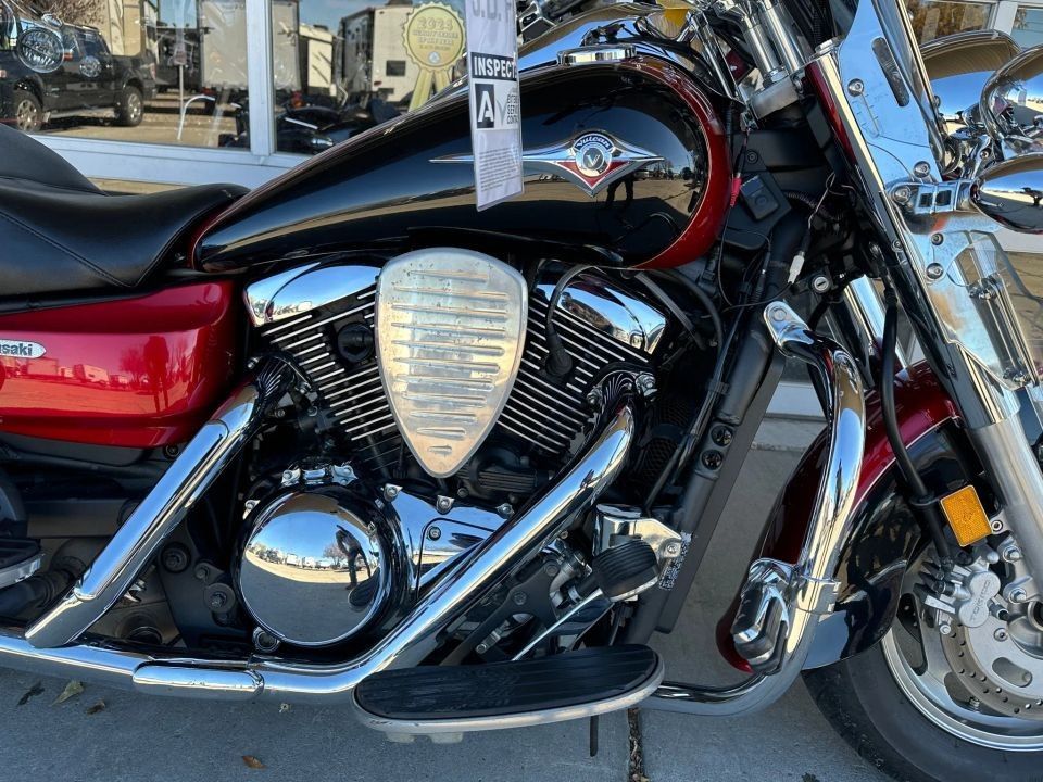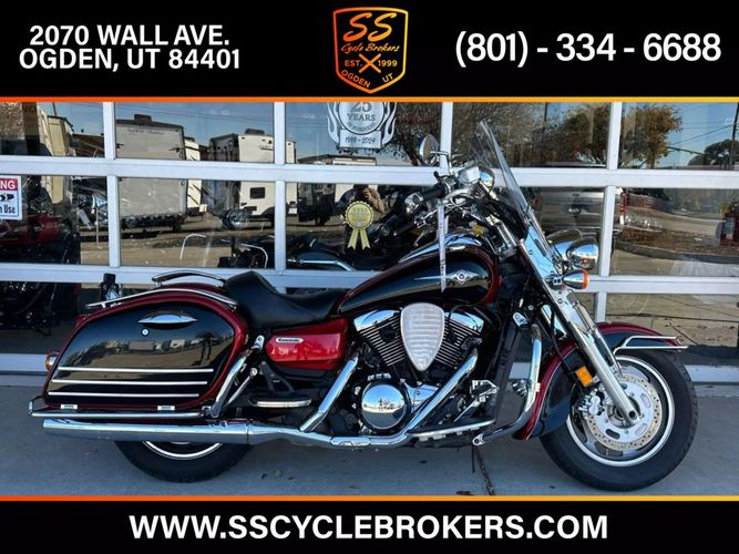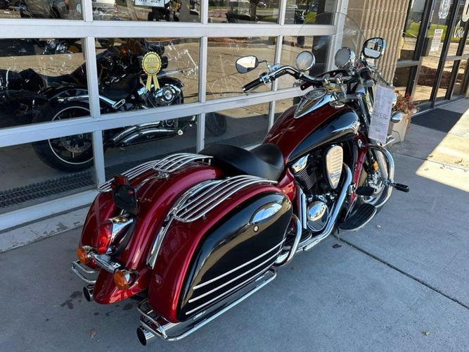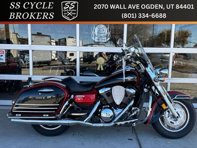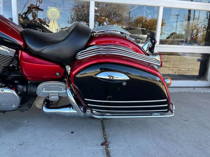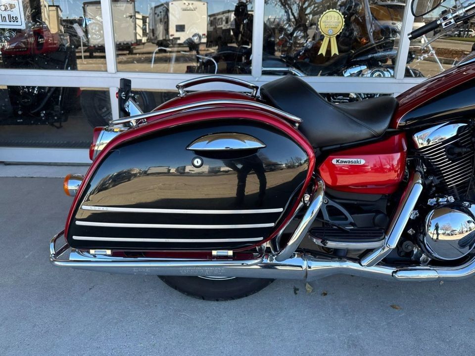 31,483 miles! This Vulcan Nomad comes equipped with a 1600cc engine, 5-speed transmission, fuel injection, liquid cooled, shaft driven, disc brakes, dual front calipers, Tokico brake system, dual chrome pipes, aftermarket air intake, two-tone red and black paint scheme, gray mag wheels, black solo rider seat, passenger pad, sissy bar, hard paint matched saddle bags with chrome luggage racks, chrome saddle bag guards, passenger floor boards, rider floor boards, chrome engine guards, highway pegs, windshield, aftermarket speakers, tank mounted speedometer, locking gas cap, aftermarket LED headlight, and more! Come in and check it out today!