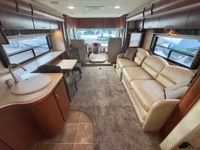 The 2011 Thor Motor Coach Serrano 33A offers the perfect blend of power, comfort, and efficiency in a stylish Class A diesel motorhome. Built on a rugged Workhorse chassis with a fuel-efficient MaxxForce V8 diesel engine, this coach measures approximately 34 feet in length and provides a roomy dual-slide layout. Inside, you'll find residential-style finishes, a fully equipped kitchen, a private master bedroom, and a full bathroom—designed for both short getaways and extended travel. With very low miles, this coach has been gently used and meticulously maintained, offering many more miles of adventure for its next owner.