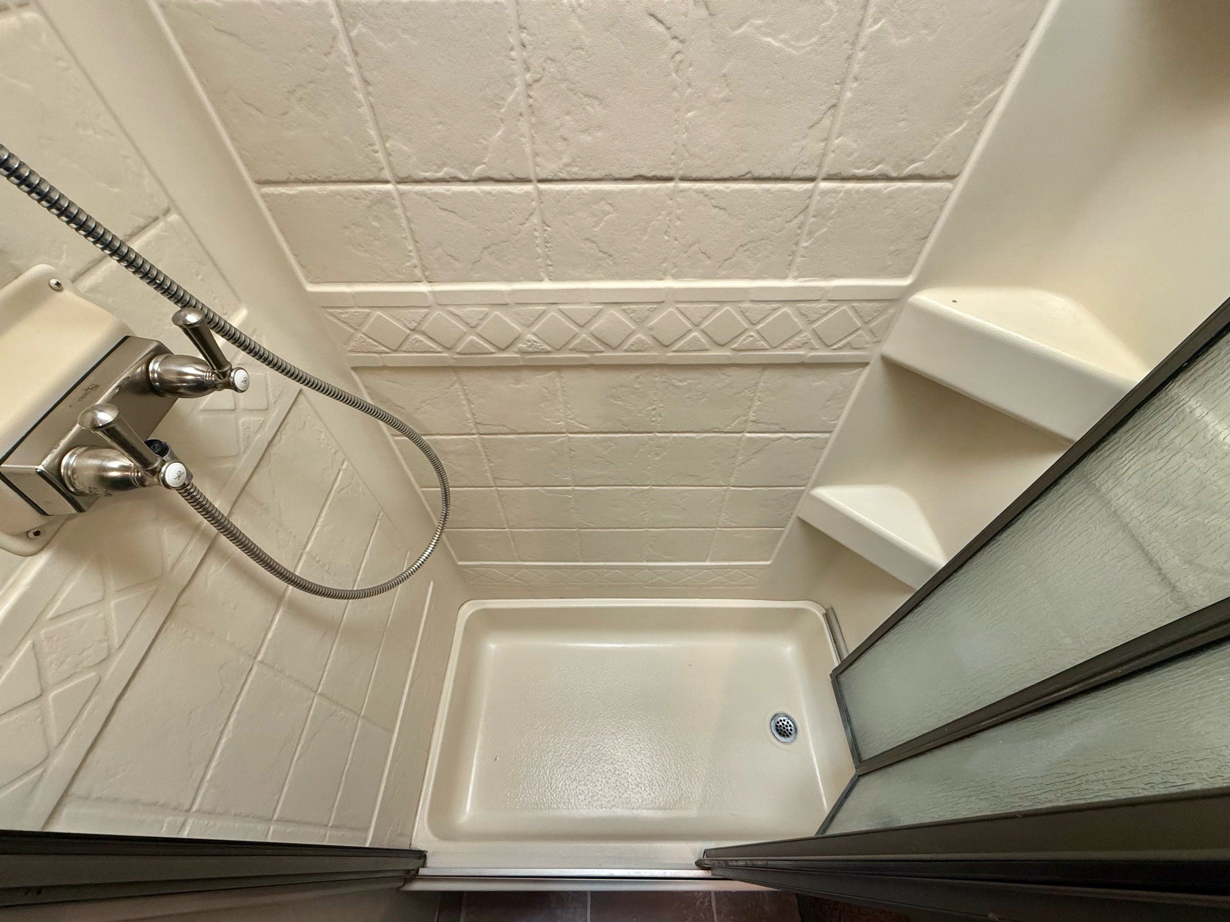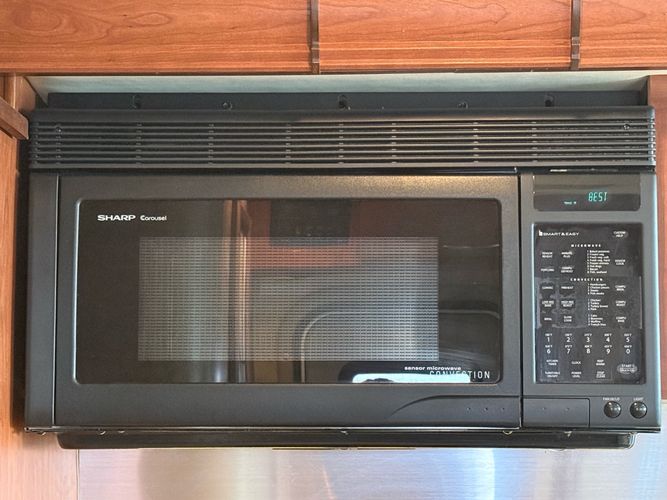 Kitchen: 3-burner range, microwave/convection oven, refrigerator/freezer