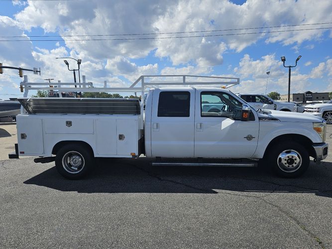 The 2012 Ford F-350 King Ranch Lariat Crew Cab 2WD is a powerhouse of strength, luxury, and capability. Equipped with the 6.7L Power Stroke Turbo Diesel V8, this truck delivers 400 horsepower and an impressive 800 lb-ft of torque through a TorqShift 6-speed automatic transmission. With a GVWR of 13,300 lbs and a curb weight of 7,135 lbs, it’s built for serious towing and hauling demands. Inside, the King Ranch trim offers premium leather comfort and a spacious crew cab with four full doors. This particular truck comes with a custom bed, adding unique utility and style to its already impressive package.