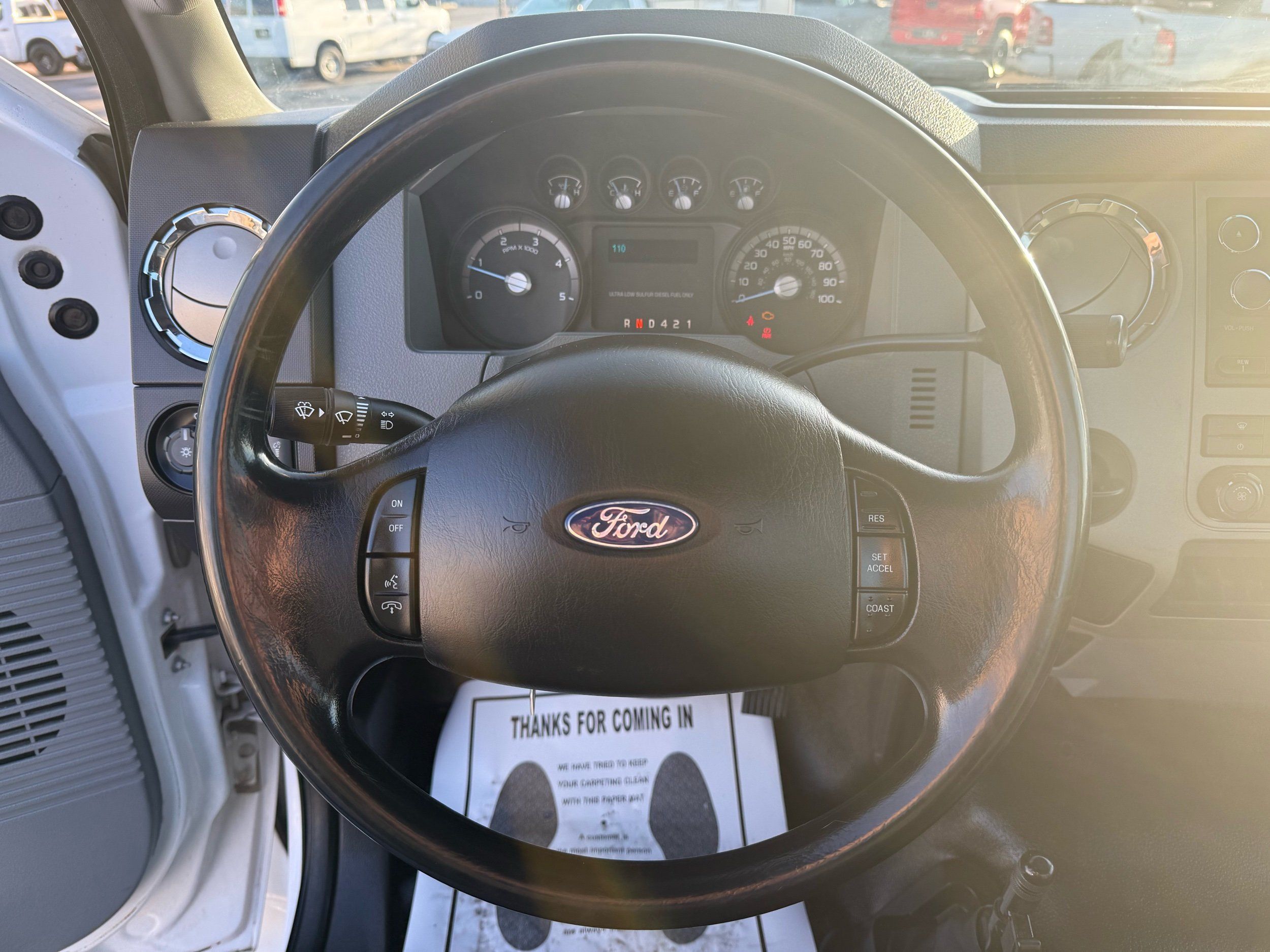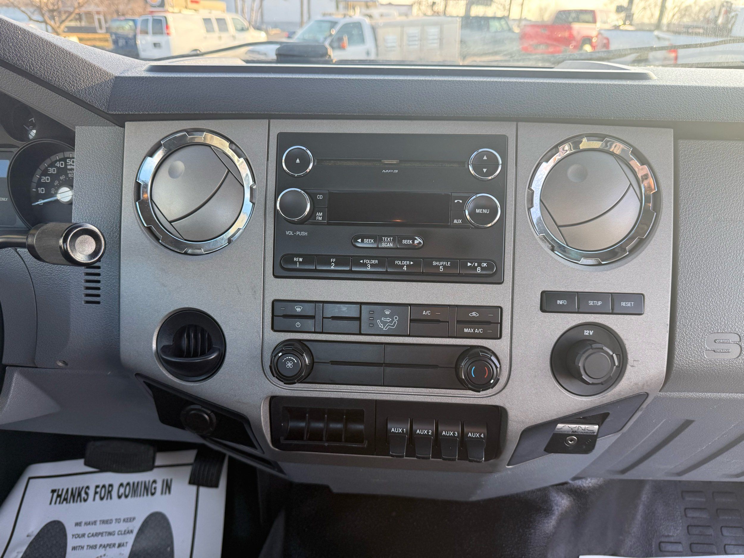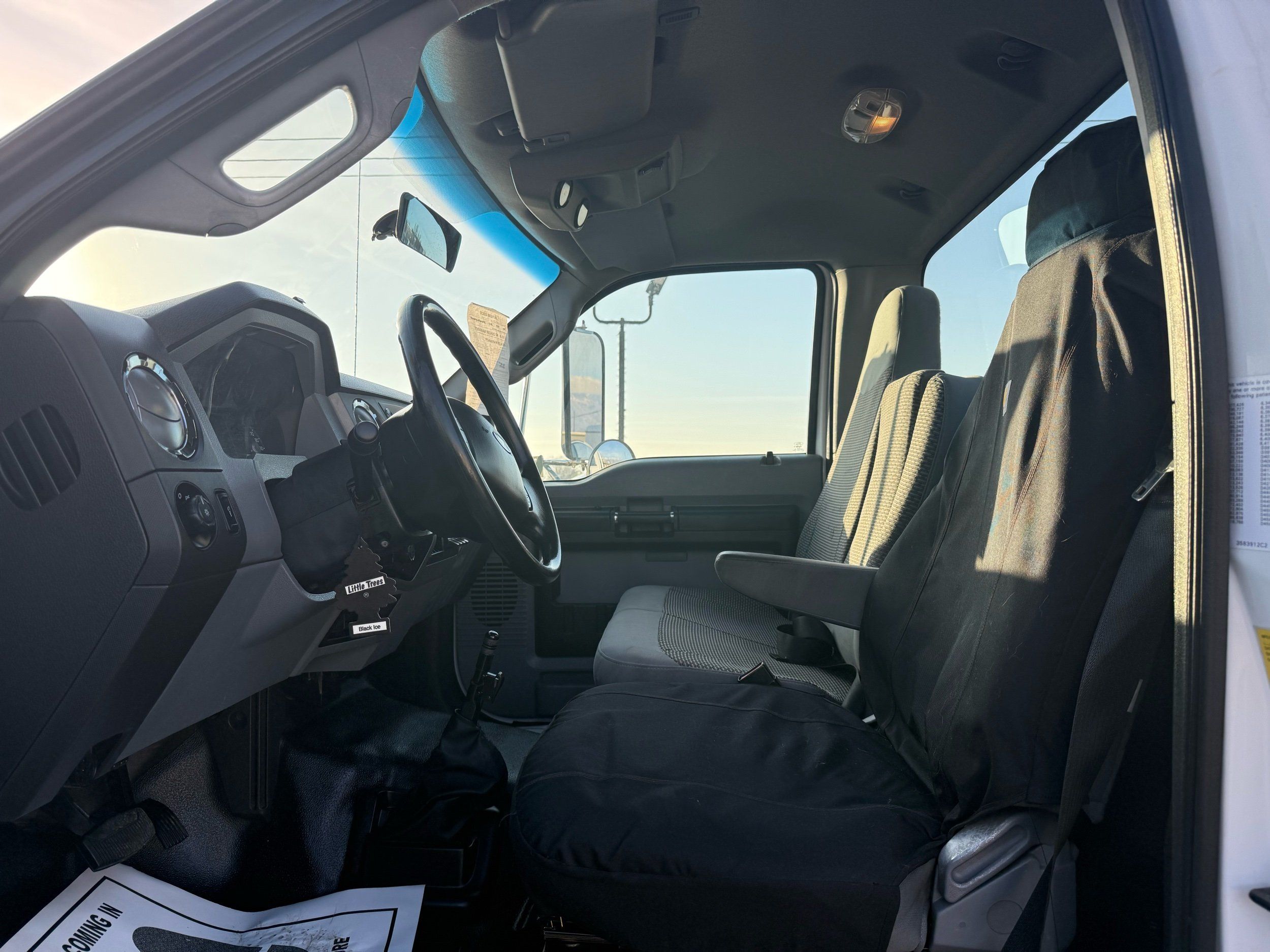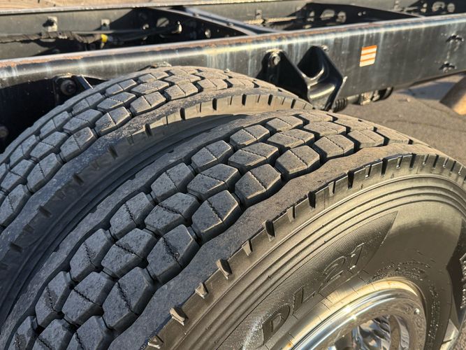 The truck sits on like-new Hankook MAX DL21 rears and AH37 fronts, paired with 22.5" steel rear wheels and Alcoa aluminum fronts for a professional, work-ready look. The 25,999 GVWR makes it ideal for towing, hauling, or upfitting while keeping your licensing simple. Inside, it’s clean and comfortable with gray cloth seating, an adjustable driver seat, bench middle seat, power windows, power locks, cruise control, and a working AM/FM CD stereo. It also includes auxiliary switches, can lights, heat/AC, and an exhaust brake — everything you want in a well-equipped medium-duty truck.