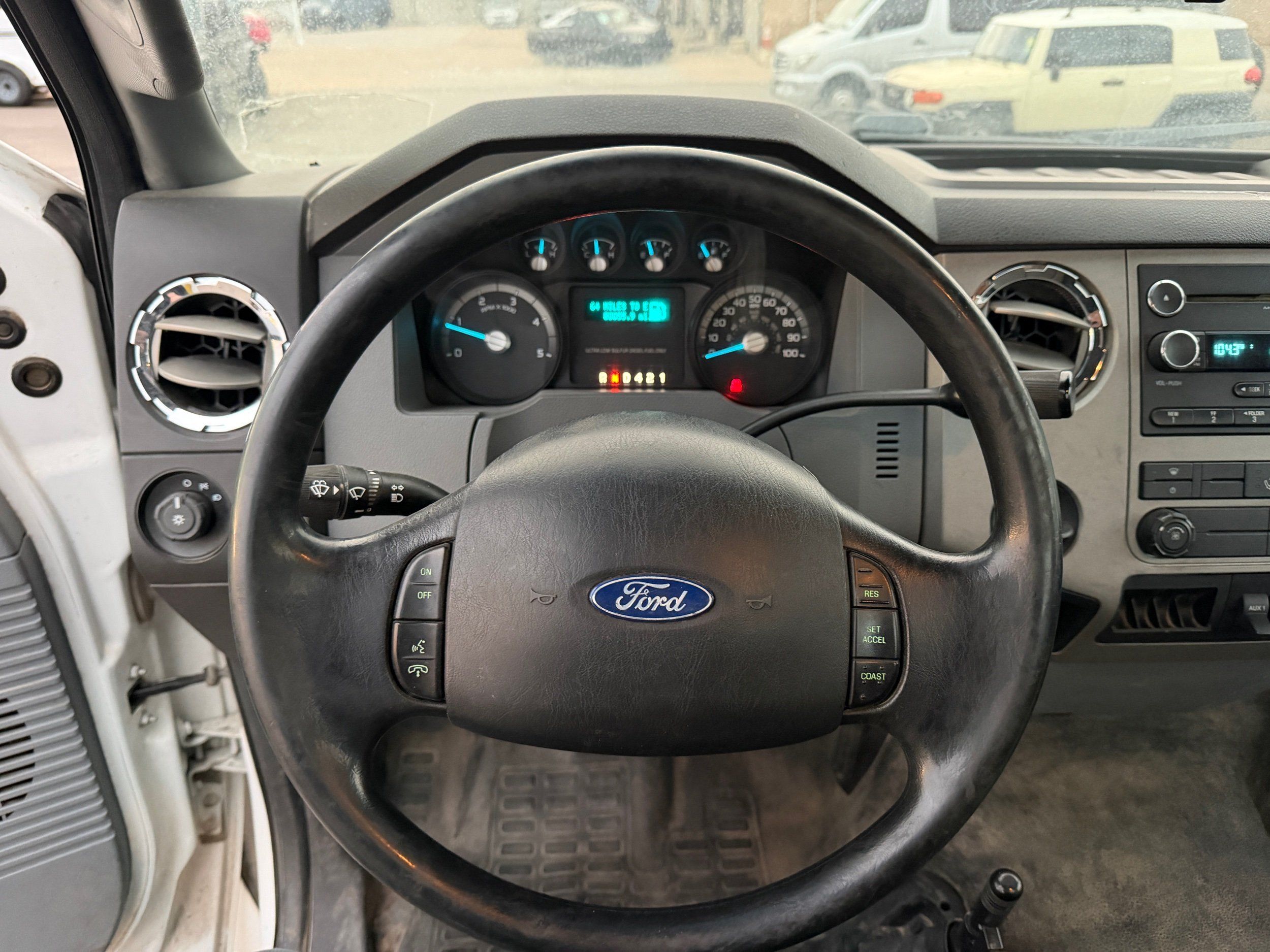 The truck sits on like-new Hankook MAX DL21 rears and AH37 fronts, paired with 22.5" steel rear wheels and Alcoa aluminum fronts for a professional, work-ready look. The 25,999 GVWR makes it ideal for towing, hauling, or upfitting while keeping your licensing simple. Inside, it’s clean and comfortable with gray cloth seating, an adjustable driver seat, bench middle seat, power windows, power locks, cruise control, and a working AM/FM CD stereo. It also includes auxiliary switches, can lights, heat/AC, and an exhaust brake — everything you want in a well-equipped medium-duty truck.