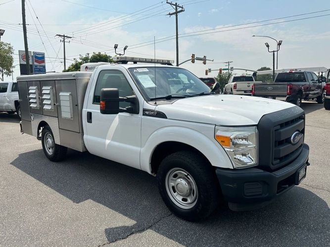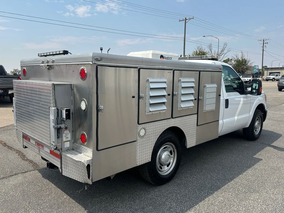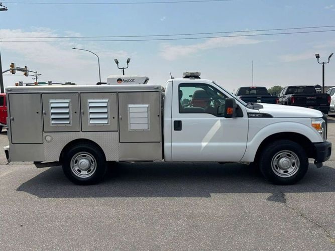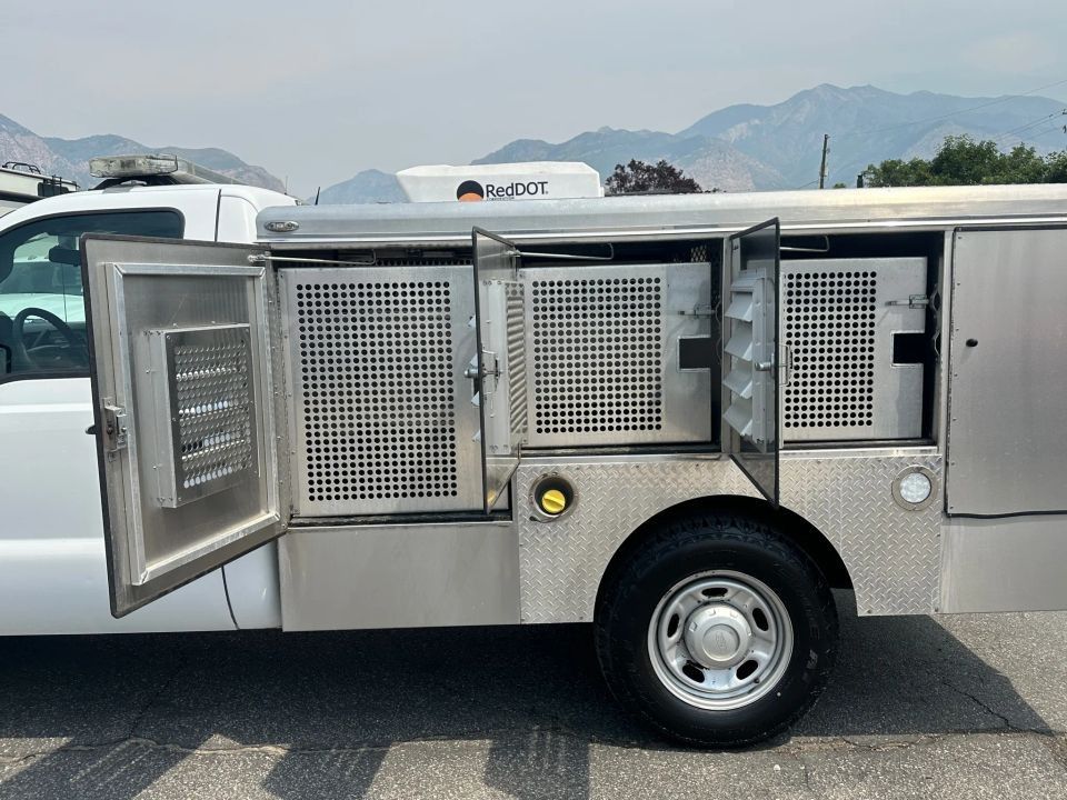82,829 miles! This F350 comes equipped with a 6.2L V8 engine, automatic transmission, 2 wheel drive, traction control, cruise control, tow/haul mode, tow package, gray leather seats, power windows, power mirrors, power locks, bench front seat with folding console, AC/heat climate control, auxiliary power outlets, Whelen light bar with controls, aftermarket back up camera screen, Deerskin Mfg animal service bed with 6 kennels, rear storage compartment, roof mounted RedDot Corp AC unit for animals, rear Tommy Gate hydraulic lift gate, spot light, and more! Come in and check it out today!
