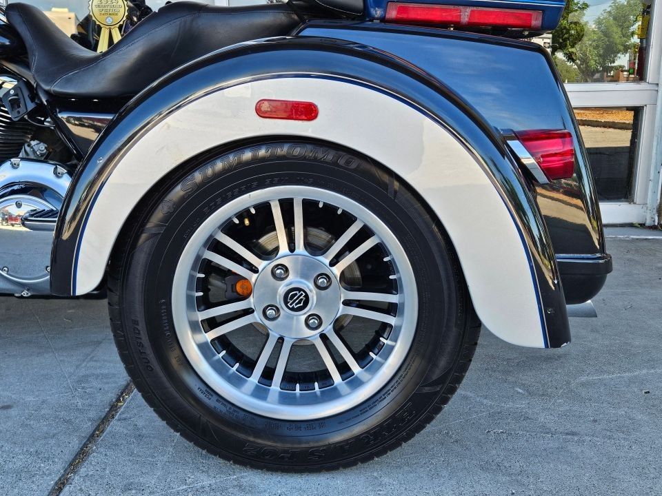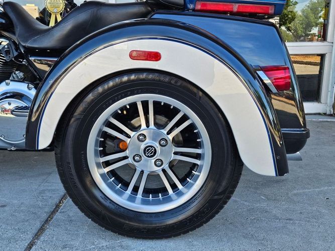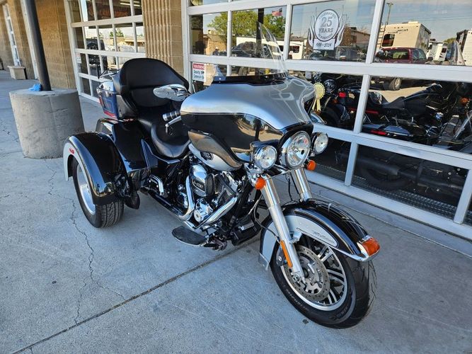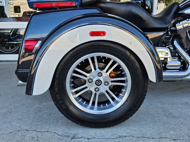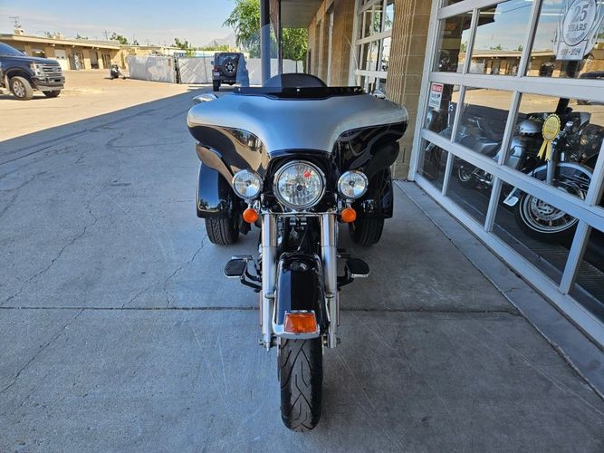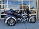 35,682 miles! This Tri Glide Ultra Classic comes equipped with a 103ci engine, 6-speed transmission, full Harley-Davidson trike kit, belt driven, disc brakes, dual front calipers, ABS, dual chrome pipes, two-tone silver and black paint scheme, black and machined mag wheels, full rear trike kit with trunk, black two up seat, rear tour trunk with rider back rest and speakers, passenger floor boards, rider floor boards, heel-toe shifter, aftermarket grips, full fairing with gauges and speakers, tall windshield, AM/FM/AUX media player, cruise control, spot lights, steering stabilizer strut, Saddlemen leather fender protectors, and more! Come in and check it out today!