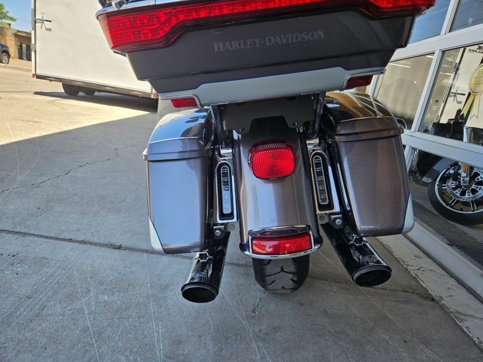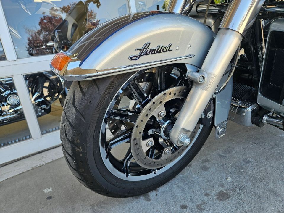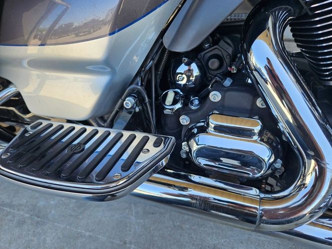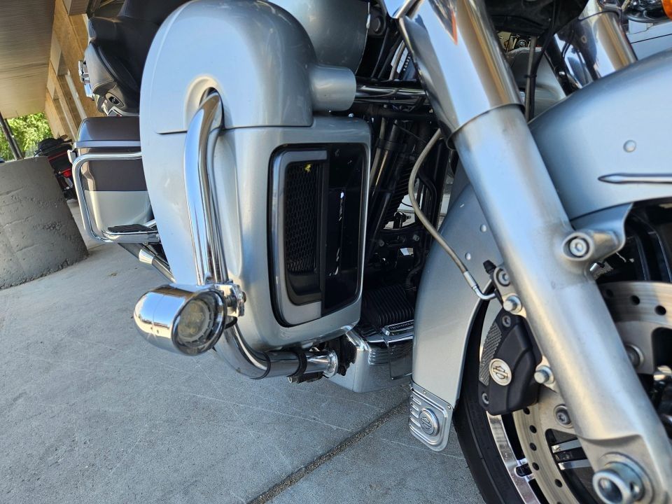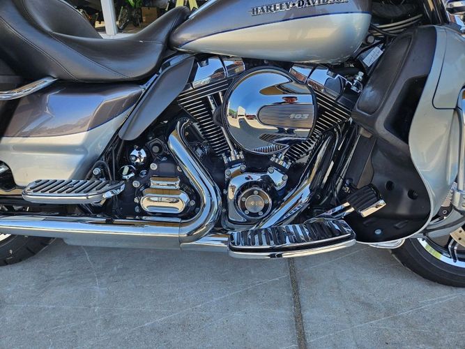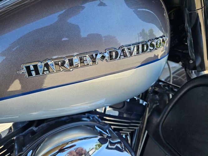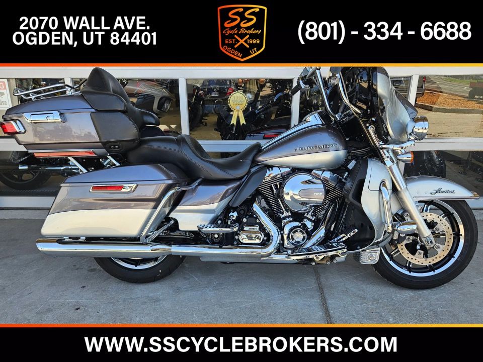 This Ultra Limited comes equipped with a 103ci engine, 6-speed transmission, fuel injection, air cooled, belt drive, disc brakes, dual front calipers, ABS, traction control, cruise control, hands-free connection, navigation, aftermarket dual chrome Vance & Hines pipes, two tone gray and silver paint scheme, black and machined mag wheels, black two up seat, full rear tour pack with passenger back rest and speakers, chrome bag guards, passenger boards, rider floor boards, paint matched lowers with chrome engine guard, engine guard mounted LED lights, aftermarket bars, steel braided cables, aftermarket grips, limited fairing mounted gauges, touchscreen media player with AM/FM/BT/USB media capabilities, and more! Come in and check it out today!