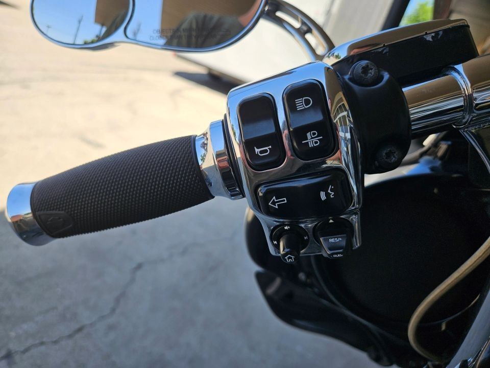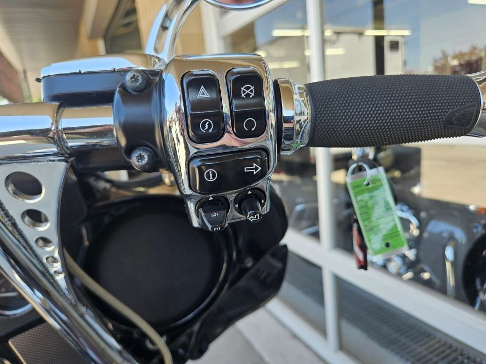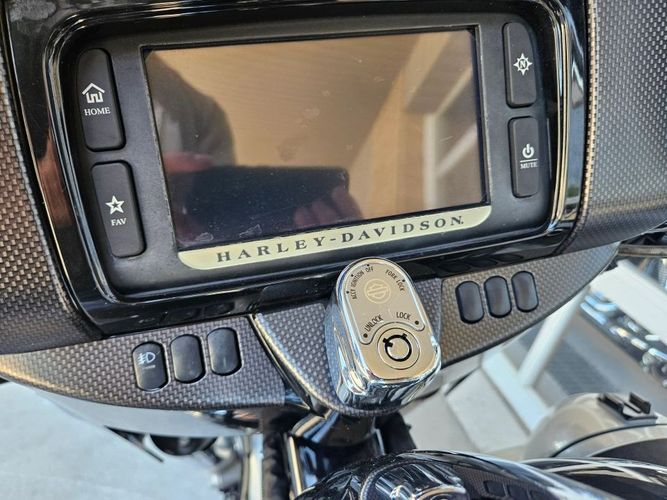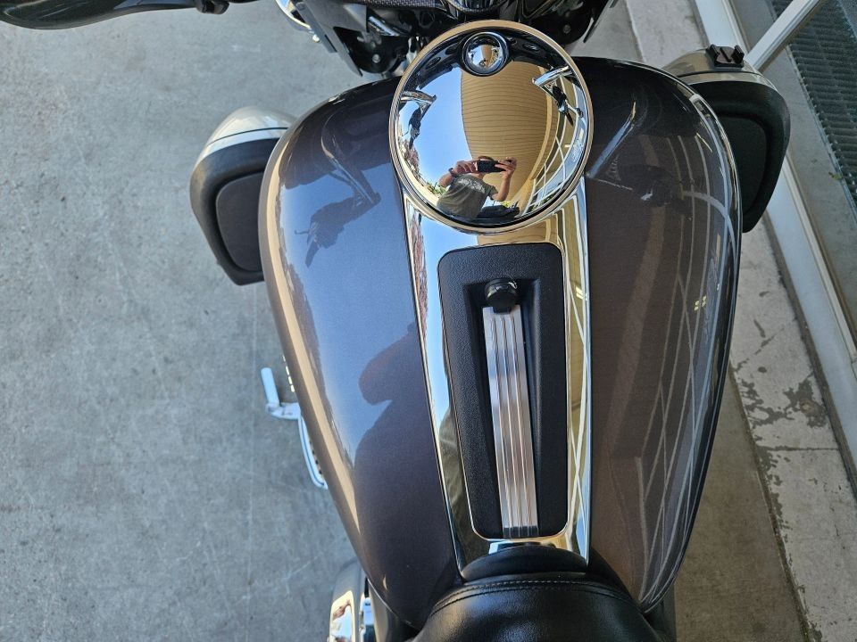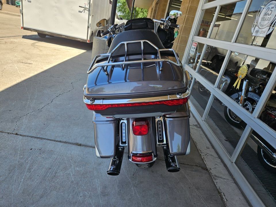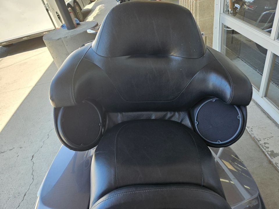 This Ultra Limited comes equipped with a 103ci engine, 6-speed transmission, fuel injection, air cooled, belt drive, disc brakes, dual front calipers, ABS, traction control, cruise control, hands-free connection, navigation, aftermarket dual chrome Vance & Hines pipes, two tone gray and silver paint scheme, black and machined mag wheels, black two up seat, full rear tour pack with passenger back rest and speakers, chrome bag guards, passenger boards, rider floor boards, paint matched lowers with chrome engine guard, engine guard mounted LED lights, aftermarket bars, steel braided cables, aftermarket grips, limited fairing mounted gauges, touchscreen media player with AM/FM/BT/USB media capabilities, and more! Come in and check it out today!