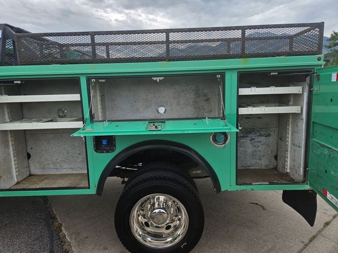 ONLY 131,472 miles! This F550 comes equipped with a 6.7L Powerstroke Diesel engine, automatic 6-speed transmission, 4 wheel drive with manual locking front hubs, 4.88 ratio limited slip axles, DRW with tires in great shape, 19,500 GVWR package, dual alternators, payload plus package, aftermarket MCB utility bed with metal cabinets, metal rear tail gate, upper storage racks, aftermarket GPI fuel transfer tanks with pump handles, aftermarket metal front bumper with brush guard, aftermarket ENGO front winch, gray leather work seats, power locks, power windows, power mirrors, AC/heat climate control, auxiliary power out lets, AM/FM/CD/AUX media capabilites,  and more! Come in and check it out today!