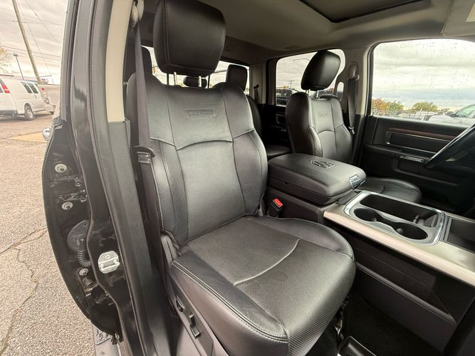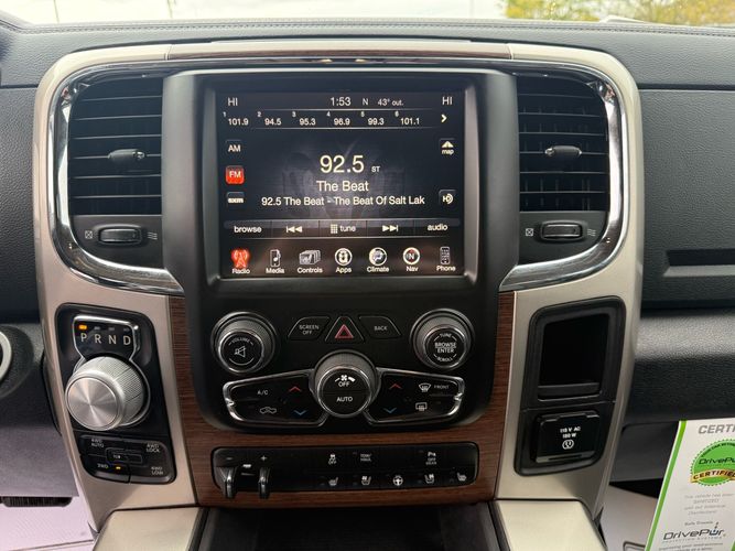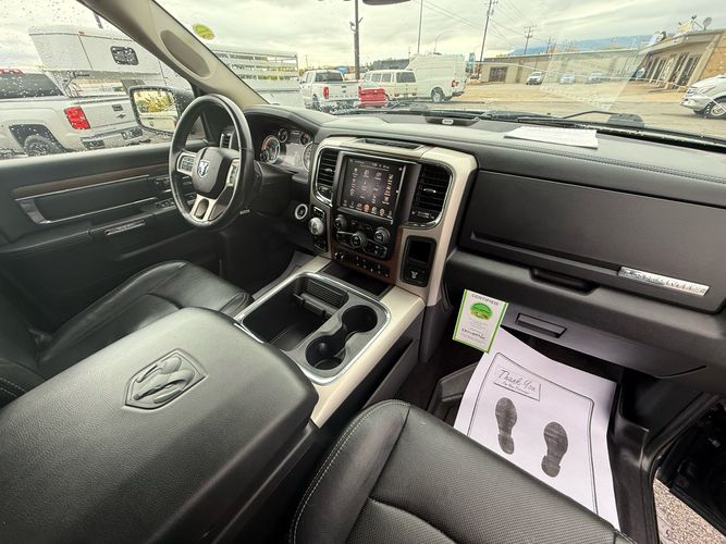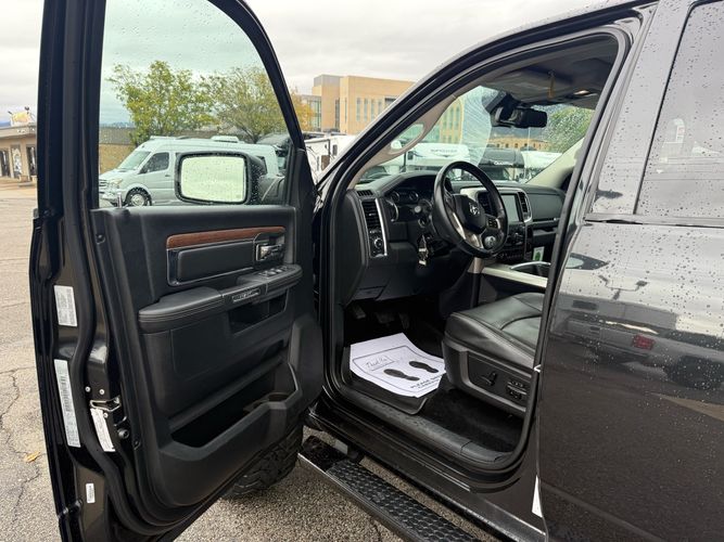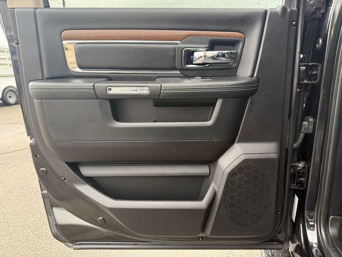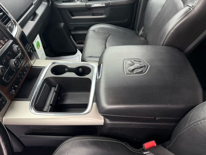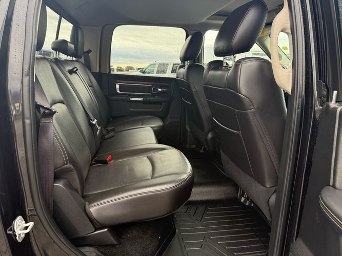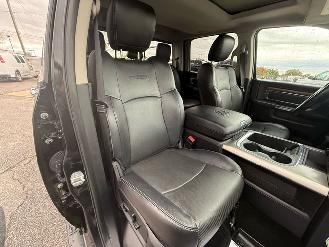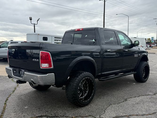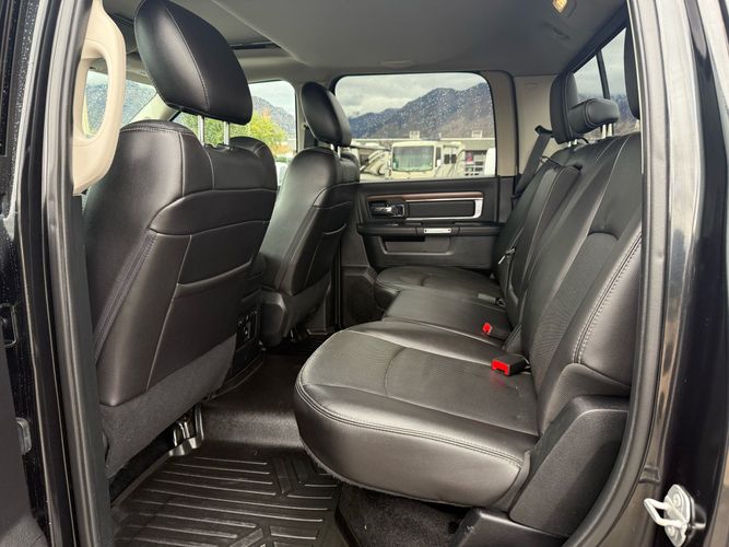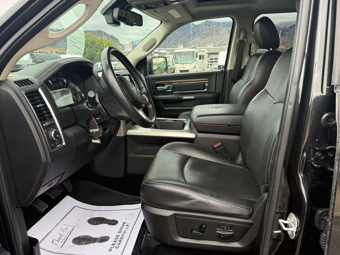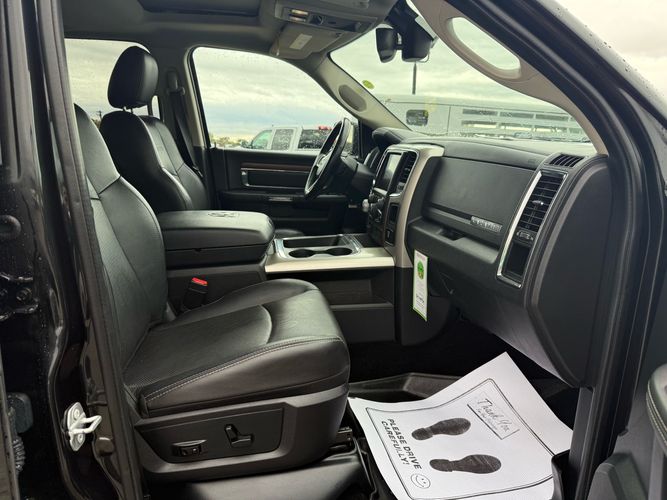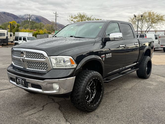 Experience the perfect blend of luxury and rugged capability with this 2016 Ram 1500 Laramie Crew Cab. Dressed in a stunning Brilliant Black Crystal Pearl exterior, this powerhouse boasts a HEMI 5.7L V8 engine delivering an impressive 395 horsepower. Navigate any terrain with confidence thanks to its robust 4WD drivetrain and stylish Fuel wheels paired with Open Country Toyo M/T 22-inch tires. Inside, indulge in premium comfort featuring leather-faced bucket seats that are both heated and ventilated for optimal climate control. The cabin is enhanced by Smart Liner floor mats and offers ample rear space for passengers or cargo.