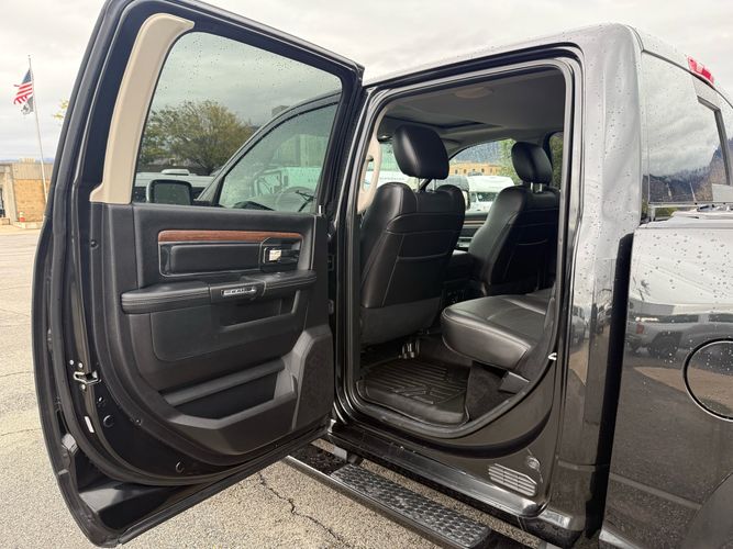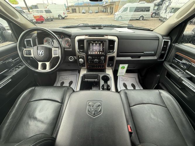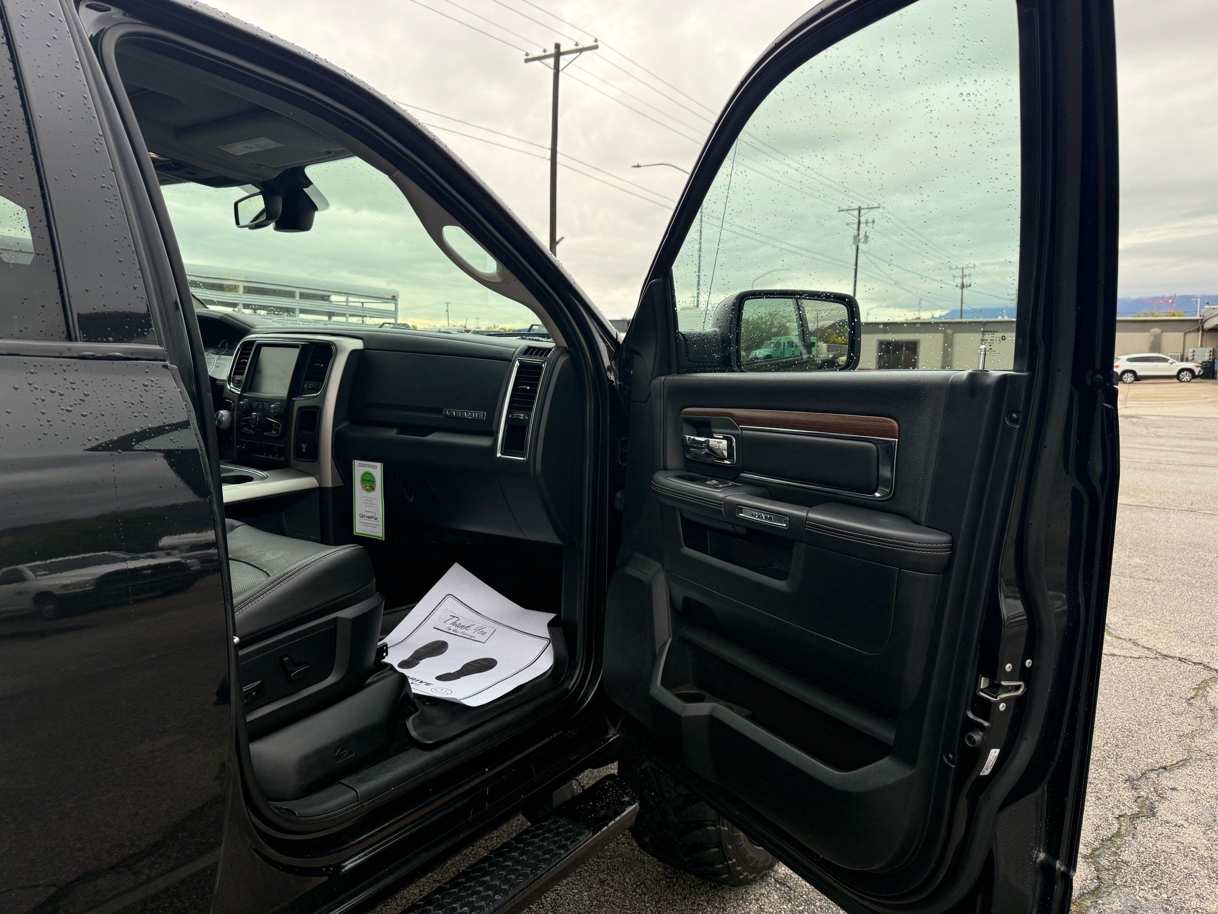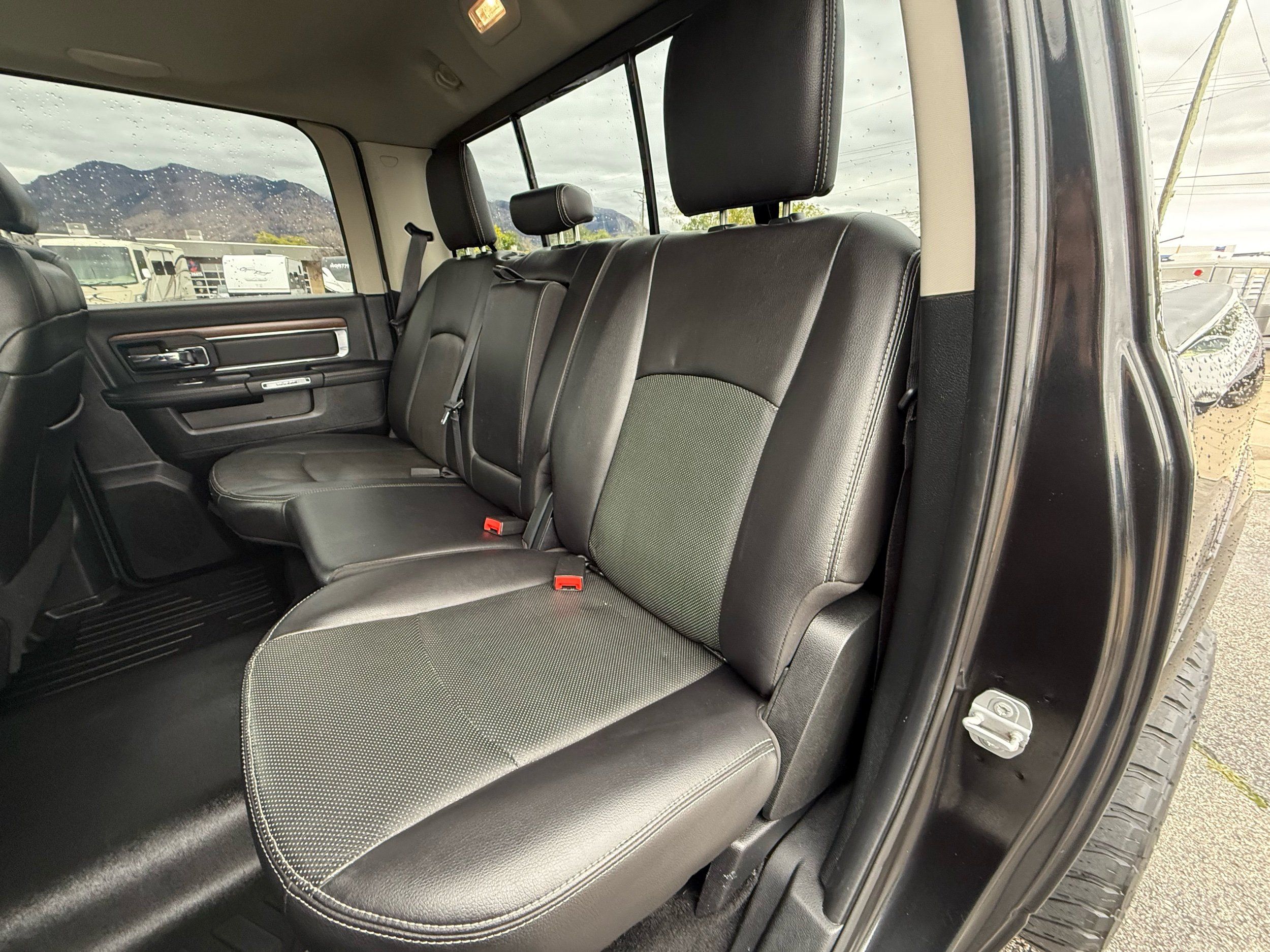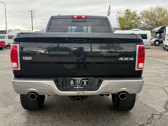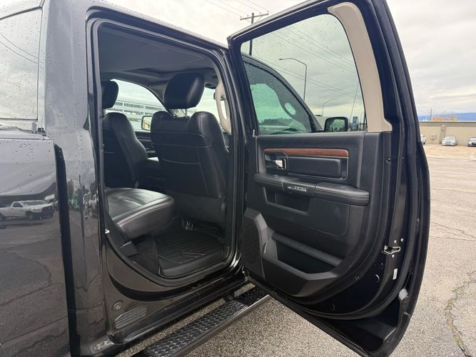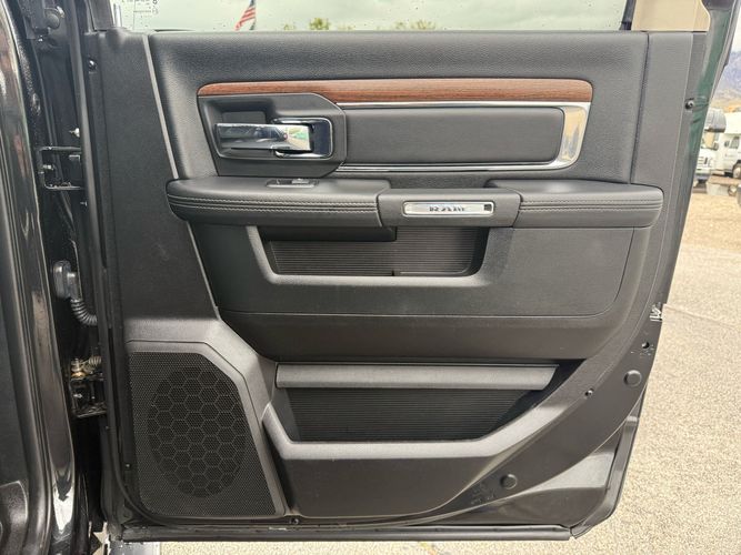 Experience the perfect blend of luxury and rugged capability with this 2016 Ram 1500 Laramie Crew Cab. Dressed in a stunning Brilliant Black Crystal Pearl exterior, this powerhouse boasts a HEMI 5.7L V8 engine delivering an impressive 395 horsepower. Navigate any terrain with confidence thanks to its robust 4WD drivetrain and stylish Fuel wheels paired with Open Country Toyo M/T 22-inch tires. Inside, indulge in premium comfort featuring leather-faced bucket seats that are both heated and ventilated for optimal climate control. The cabin is enhanced by Smart Liner floor mats and offers ample rear space for passengers or cargo.