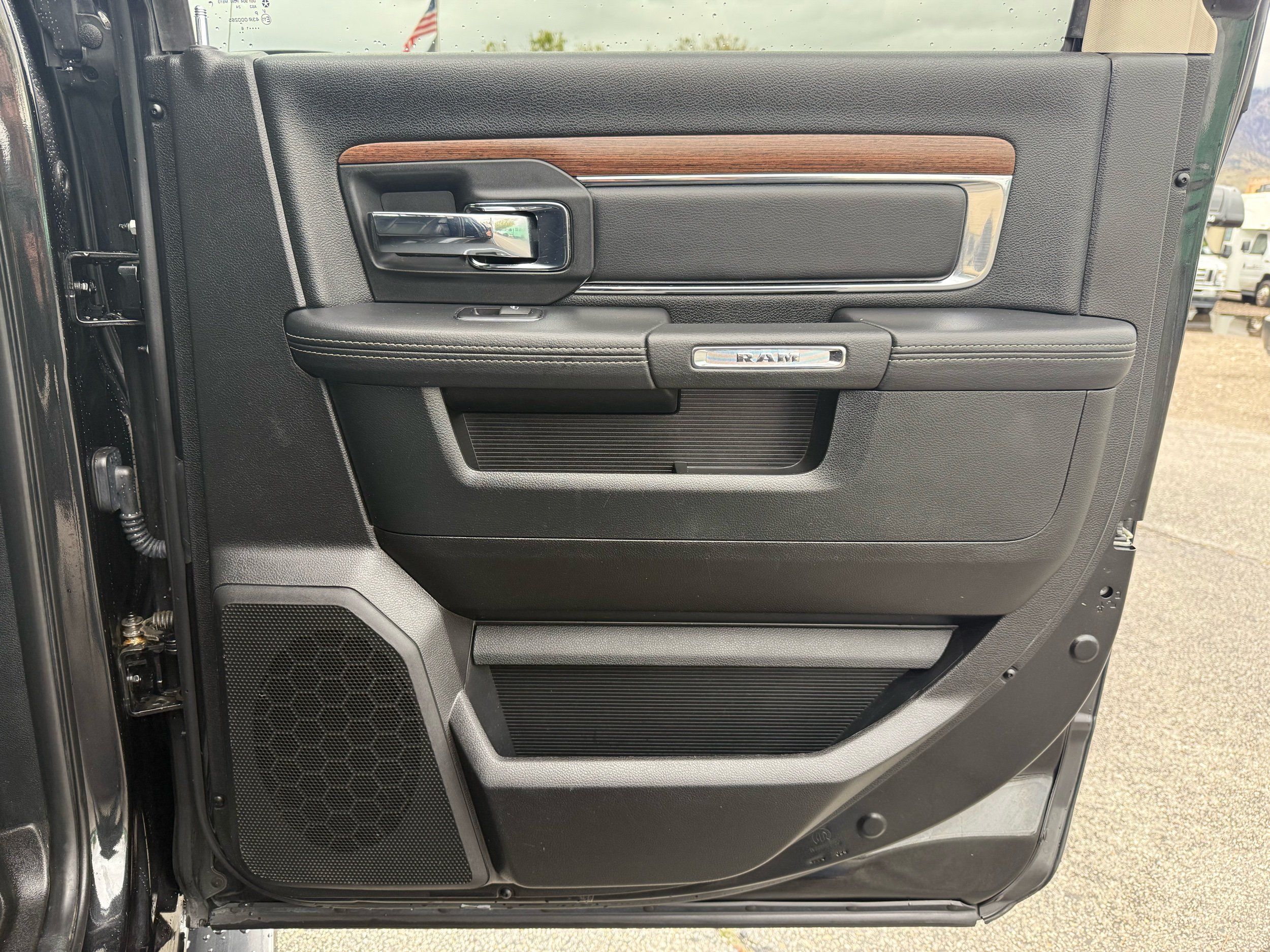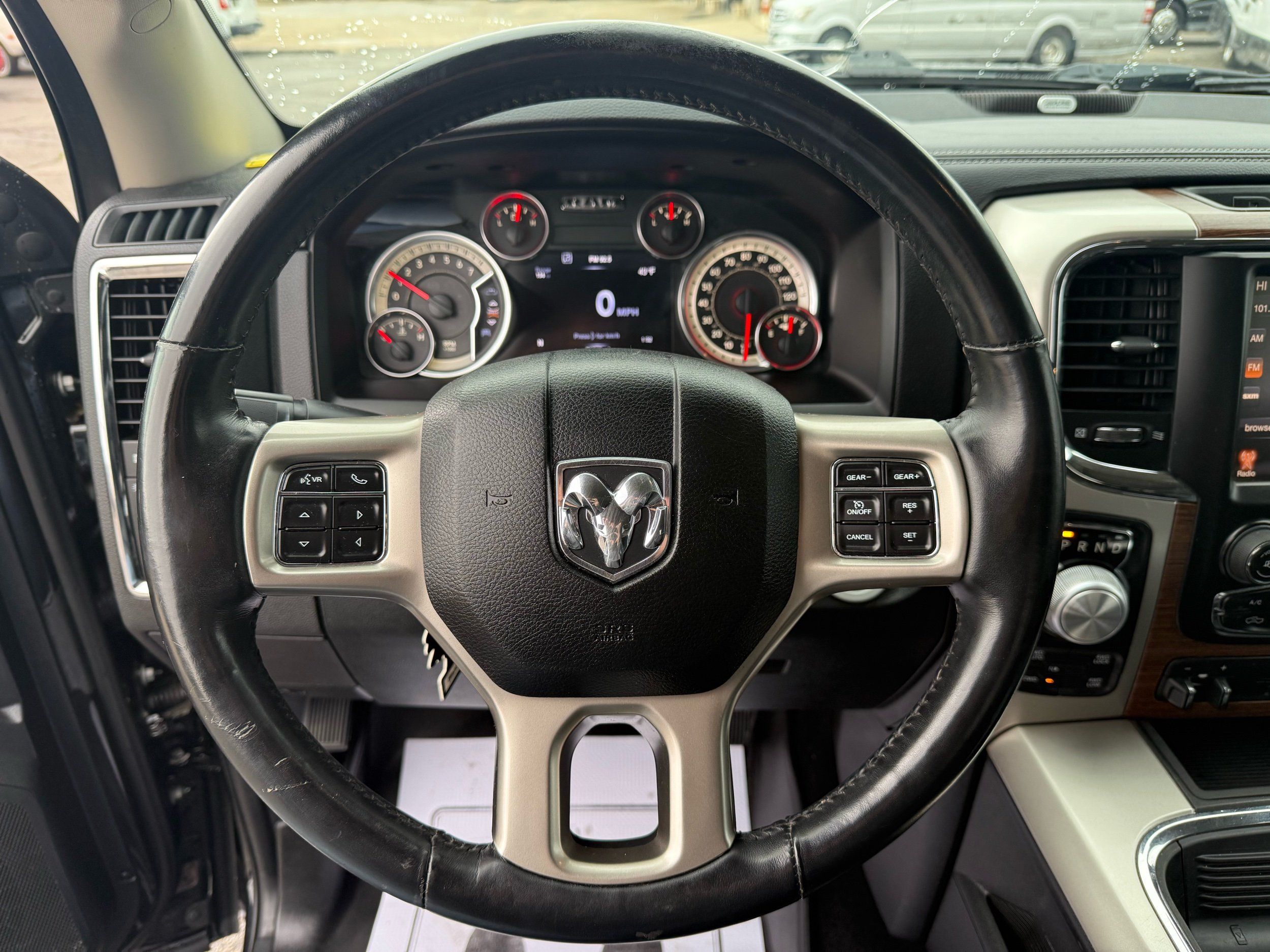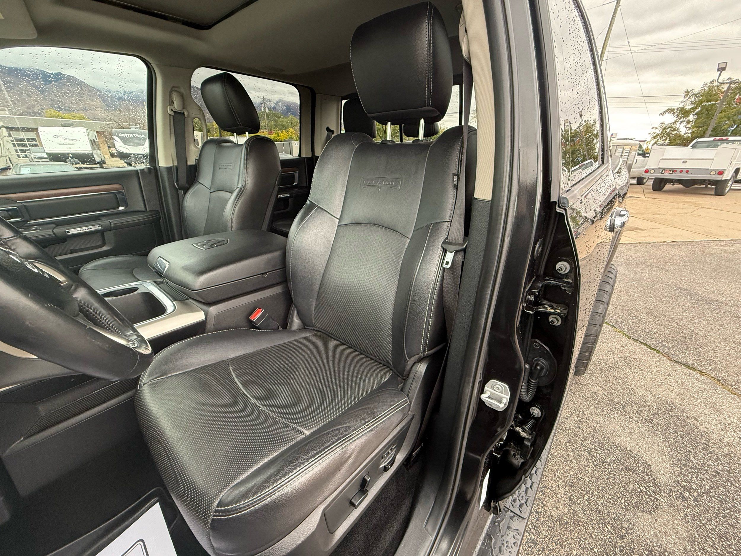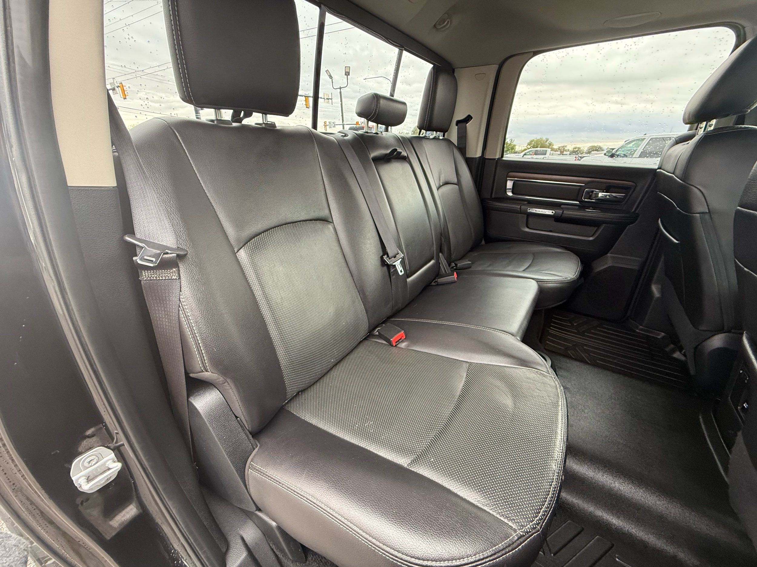 Experience the perfect blend of luxury and rugged capability with this 2016 Ram 1500 Laramie Crew Cab. Dressed in a stunning Brilliant Black Crystal Pearl exterior, this powerhouse boasts a HEMI 5.7L V8 engine delivering an impressive 395 horsepower. Navigate any terrain with confidence thanks to its robust 4WD drivetrain and stylish Fuel wheels paired with Open Country Toyo M/T 22-inch tires. Inside, indulge in premium comfort featuring leather-faced bucket seats that are both heated and ventilated for optimal climate control. The cabin is enhanced by Smart Liner floor mats and offers ample rear space for passengers or cargo.