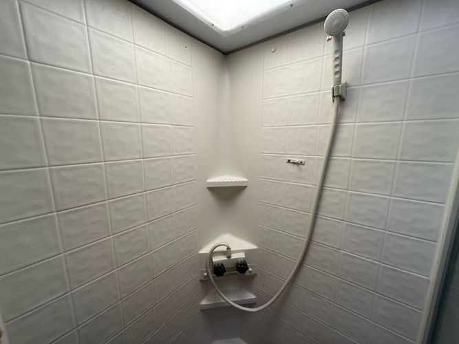 Full bathroom with shower, toilet, and sink