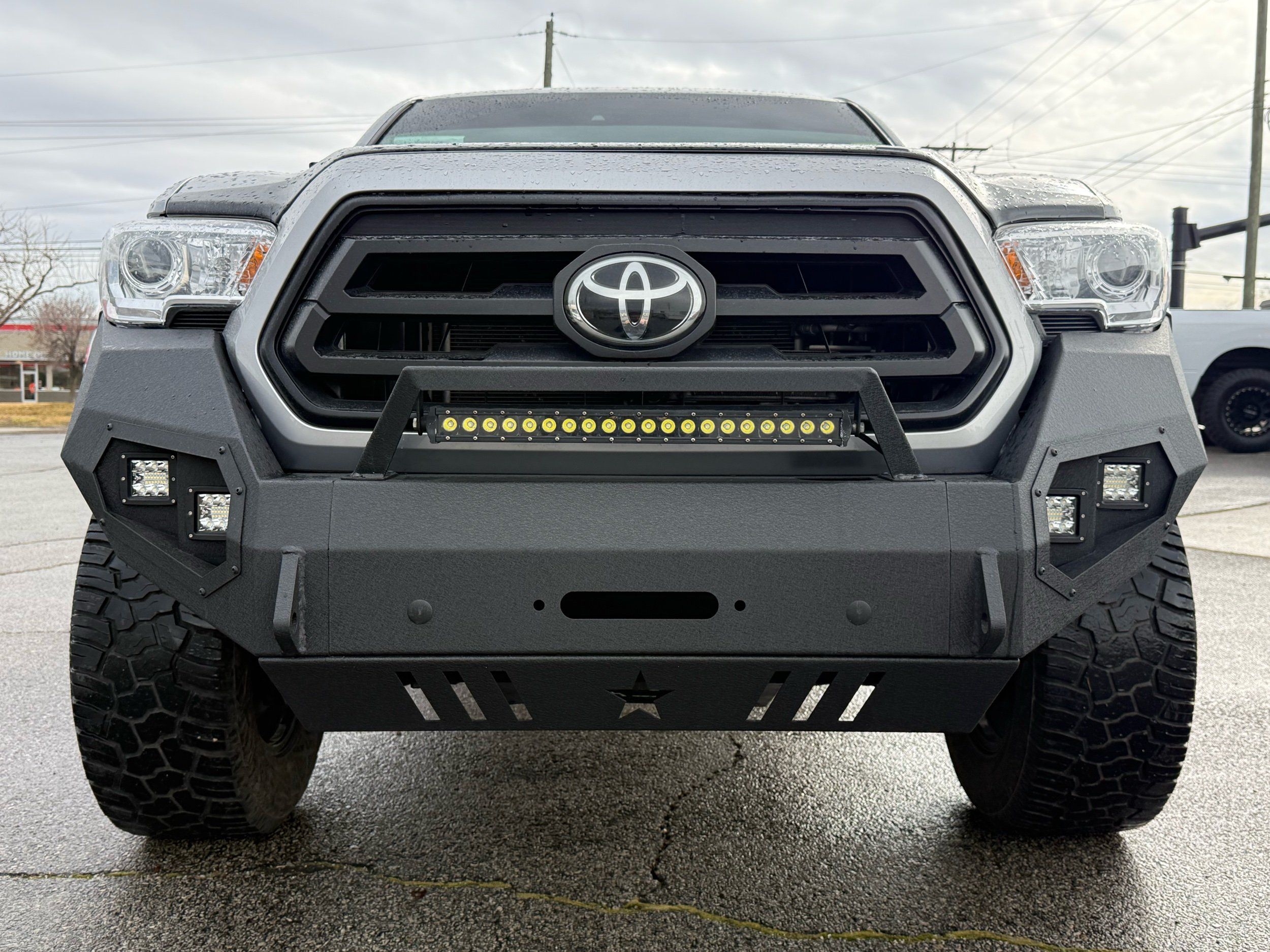 - Steel front bumper with led light pods and light bar