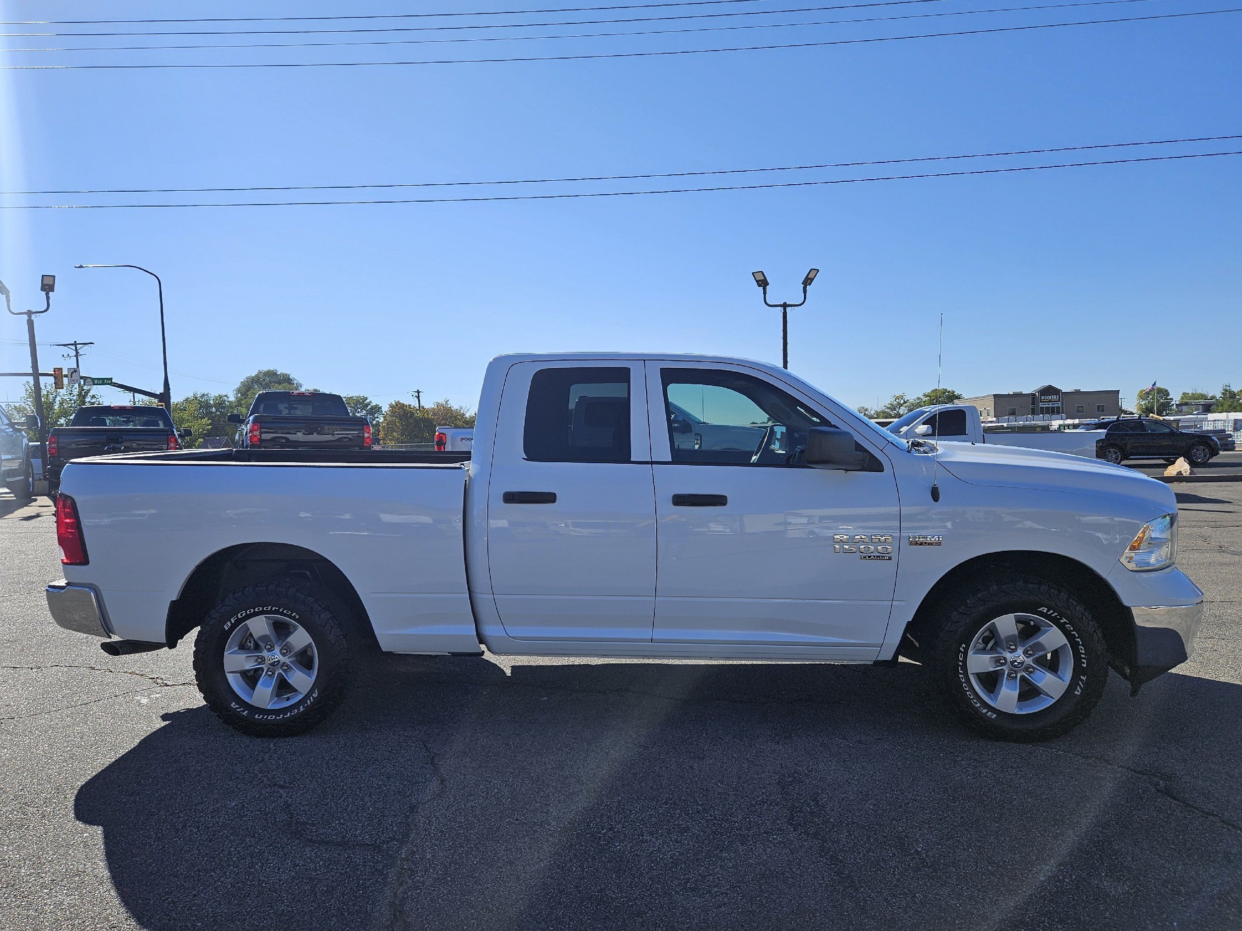 This 2021 Ram 1500 Classic Tradesman Quad Cab 4x4 is a reliable, hard-working full-size truck with the power of a 5.7L HEMI V8 and the versatility of 4x4. With seating for six, a 6'4" bed, and BFGoodrich All-Terrain tires, it’s ready for both worksite duty and weekend adventures. The white exterior with black interior keeps it clean and professional, while the TorqueFlite 8-speed transmission ensures smooth, confident driving under load.