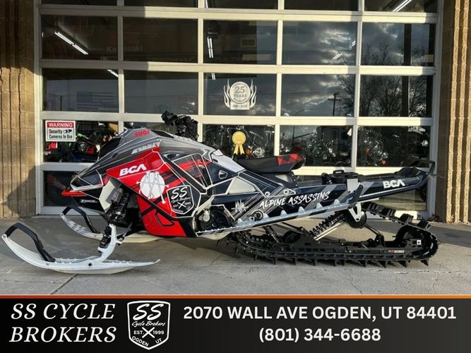 This 2021 Ski-Doo Freeride Turbo is a very unique build. Built by professional Ski-Doo factory rider, Steve Martin. This lightweight sled started out as a 2021 Freeride Turbo 154", Steve cut the factory tunnel down to a 146" short tunnel, got rid of the factory heat exchanger and replaced it with a 600RS short heat exchanger. While he had it torn down, he installed the lightweight fuel tank and seat. Steve then sold it to professional back country sledder, Randy Sugihara. Once Randy got ahold of the sled, he then installed a one-off factory Ski-Doo race pipe and can with a factory Ski-Doo race tune and clutching! He also dialed in the suspension with ZBROZ Exit X1 shocks front and rear.