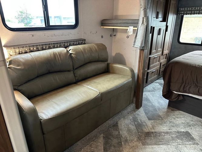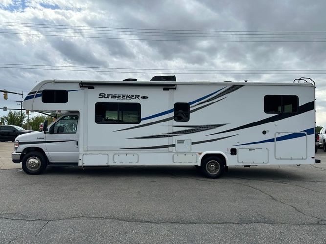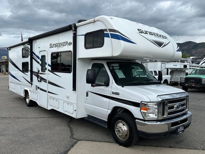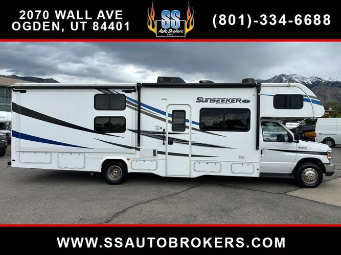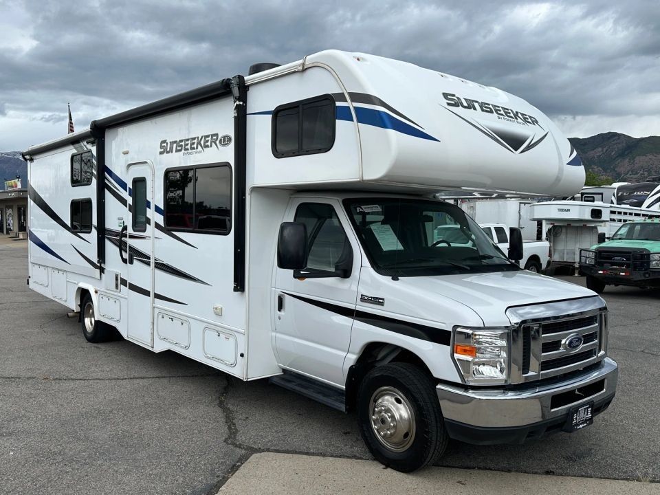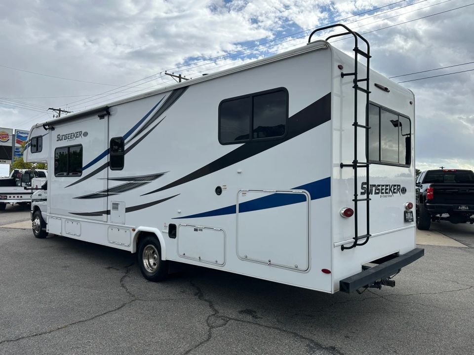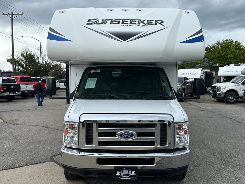 This 32ft Sunseeker comes equipped on a Ford E450 chassis with a Triton V10 engine with 34,867 miles, 4x2 driveline, automatic transmission, tow receiver, tow/haul mode, gray leather captain and co captain front chairs, power locks, power windows, power mirrors, cruise control, Pioneer stereo deck with back up camera, 2 power slide outs with awnings, power awning, one man entry door, front over hang bed with swing out Samsung flat screen tv, jack knife bed sofa with seat belts, dinette area with bed capabilities and seat belts, kitchen with microwave convection oven, stove top, sink, fridge, freezer, hallway bunk set up with bottom jack knife sofa couch, full bathroom with sink toilet and shower, rear master bed room with lots of closet space, Dometic AC/heat, Connexx media unit, and more! Come in and check it out today!