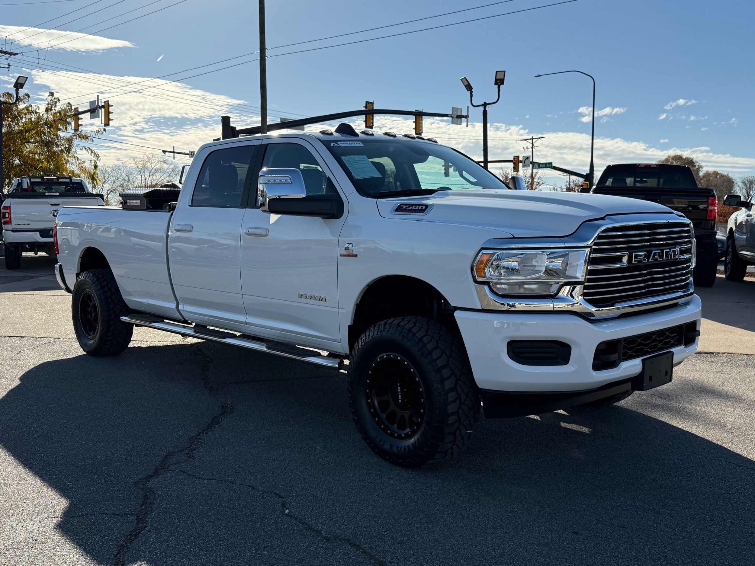 Experience the power and luxury of the 2023 Ram 3500 Laramie Crew Cab 4x4—built to conquer any challenge with confidence and style. Dressed in Bright White Clearcoat, this pristine one-owner truck features a clean CARFAX and a legendary Cummins 6-cylinder engine delivering 370 horsepower and 850 ft-lbs of torque. Paired with a smooth 6-speed automatic transmission, it offers unstoppable performance and reliability.
