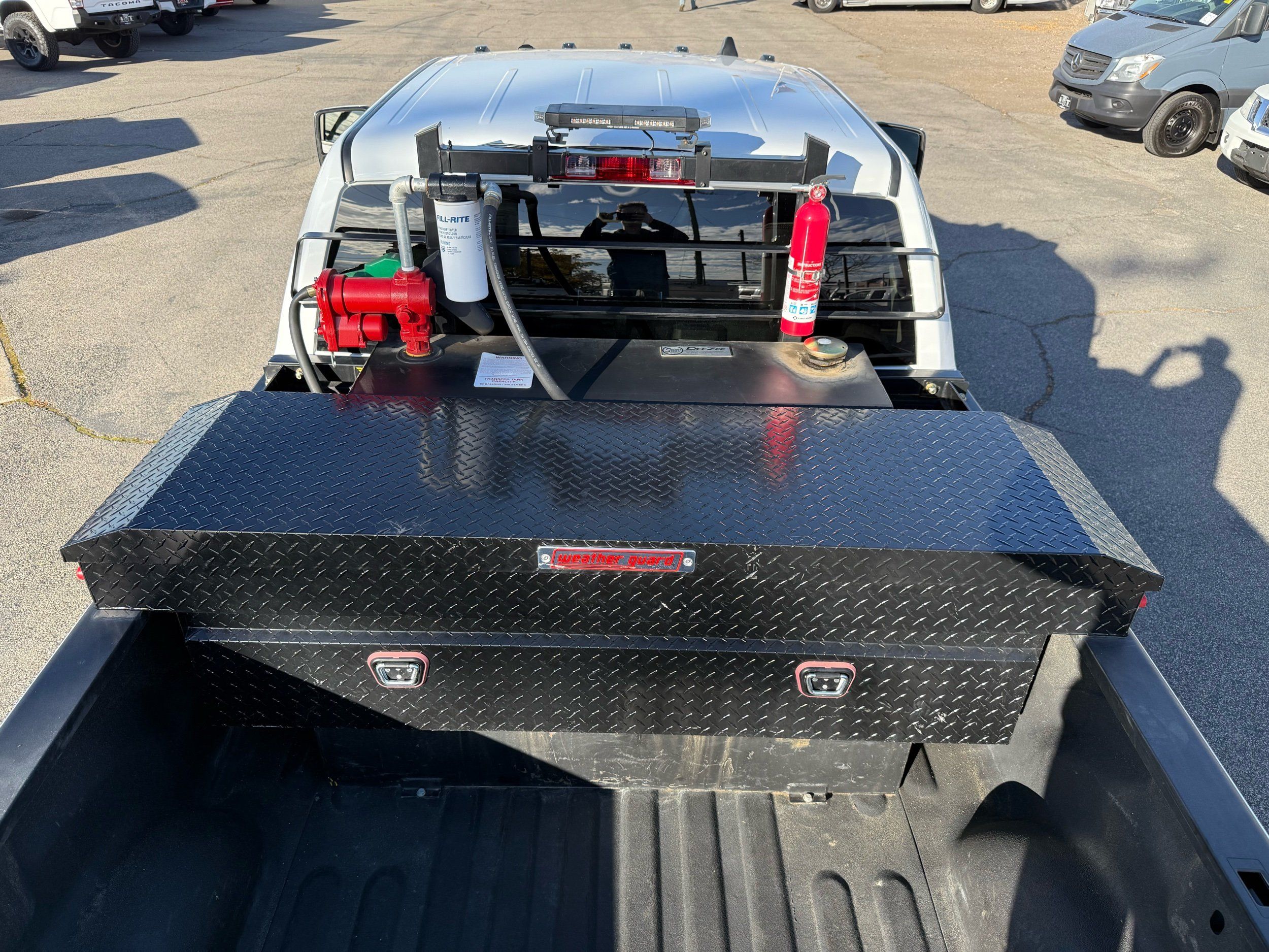 This truck’s built for serious work and long hauls. Outfitted with a Weather Guard locking toolbox and custom KCS metal headache rack with bright Hornet Yellow Catian lights, it’s ready for any job. A B&W turnover ball gooseneck hitch pairs with a 92-gallon DeeZee fuel transfer tank and 12V Fill-Rite pump, making it perfect for refueling equipment, trucks, or machinery out in the field. It’s a true mobile workhorse—ready to tow, refuel, and tackle tough jobs anywhere, with a mounted fire extinguisher for added safety. This truck rides as good as it looks with brand new Method wheels, Sailun tires and a Rough Country leveling kit!