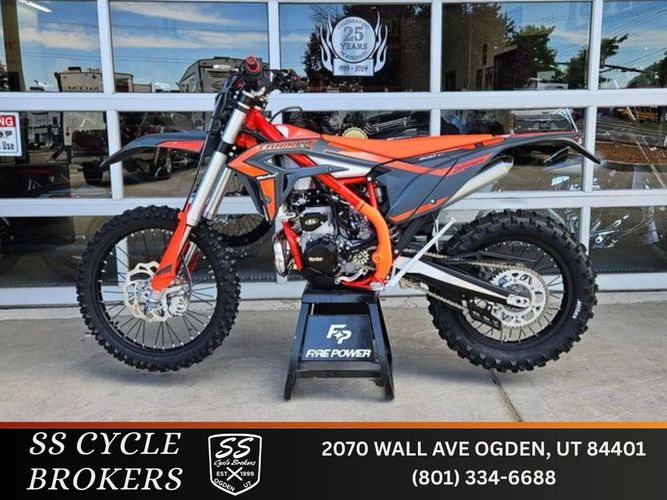 Features: Six speed transmission, off-road light & meter package, adjustable power valve, broad power delivery, dual map selection, new billet aluminum footpegs, electric start (kickstarter sold as an accessory), dual material rear sprocket, adjustable KYB AOS closed cartridge front forks, KYB rear shock with adjustable rebound and High/Low on compression adjustment, quick release front axle, reinforced handguards, MAP switch on handlebars for better access, larger rear axle, new higher performing front brake caliper, softer nonslip race seat, anodized black shift lever and rear brake pedal, anodized red aluminum fluid caps, easy access air filter box, and pre-mix.
